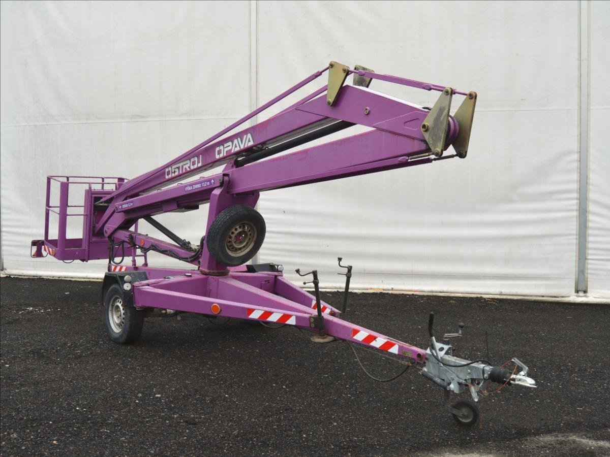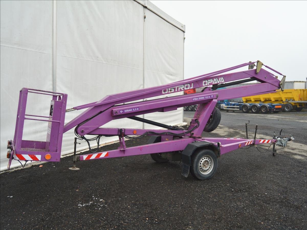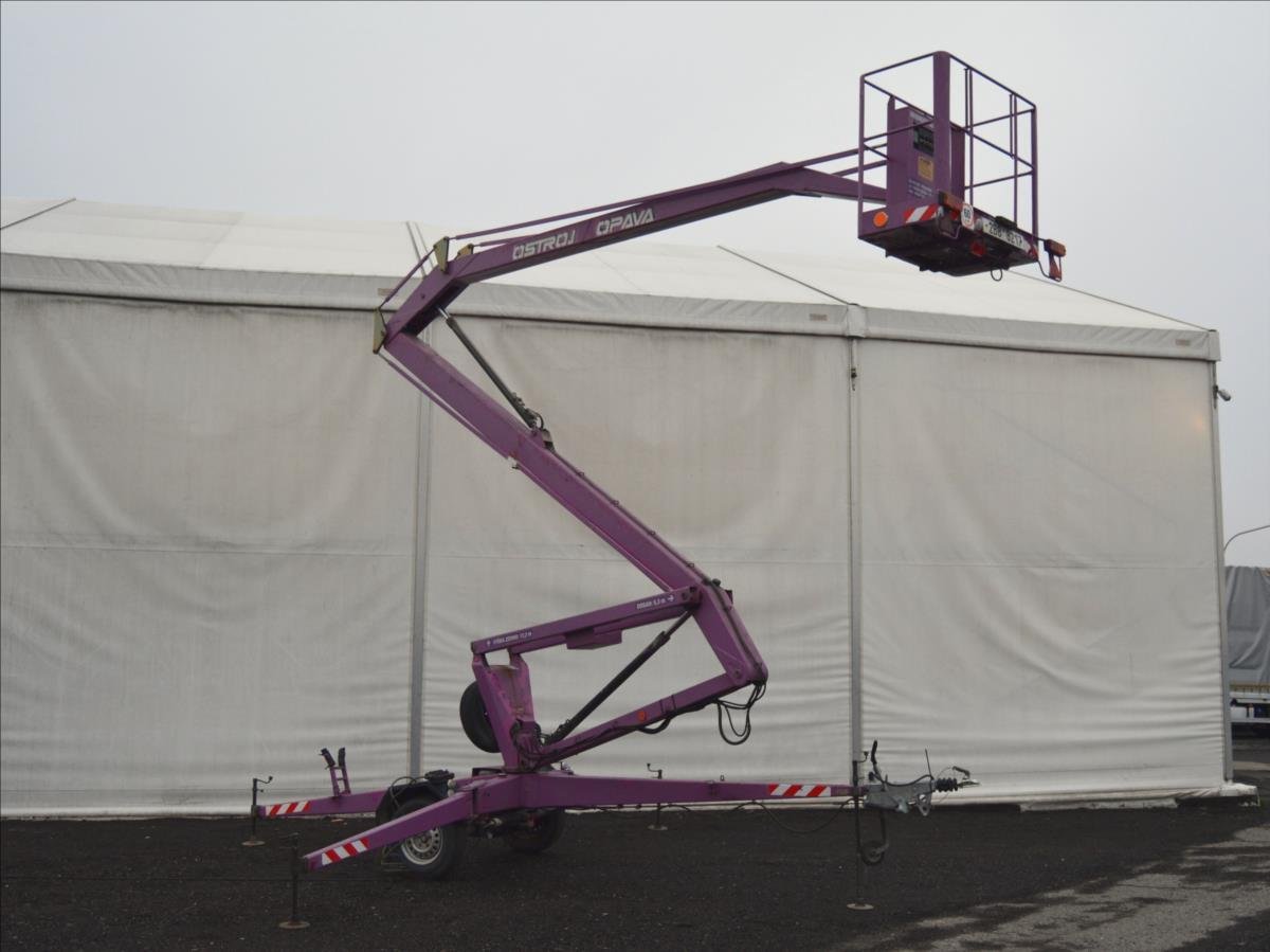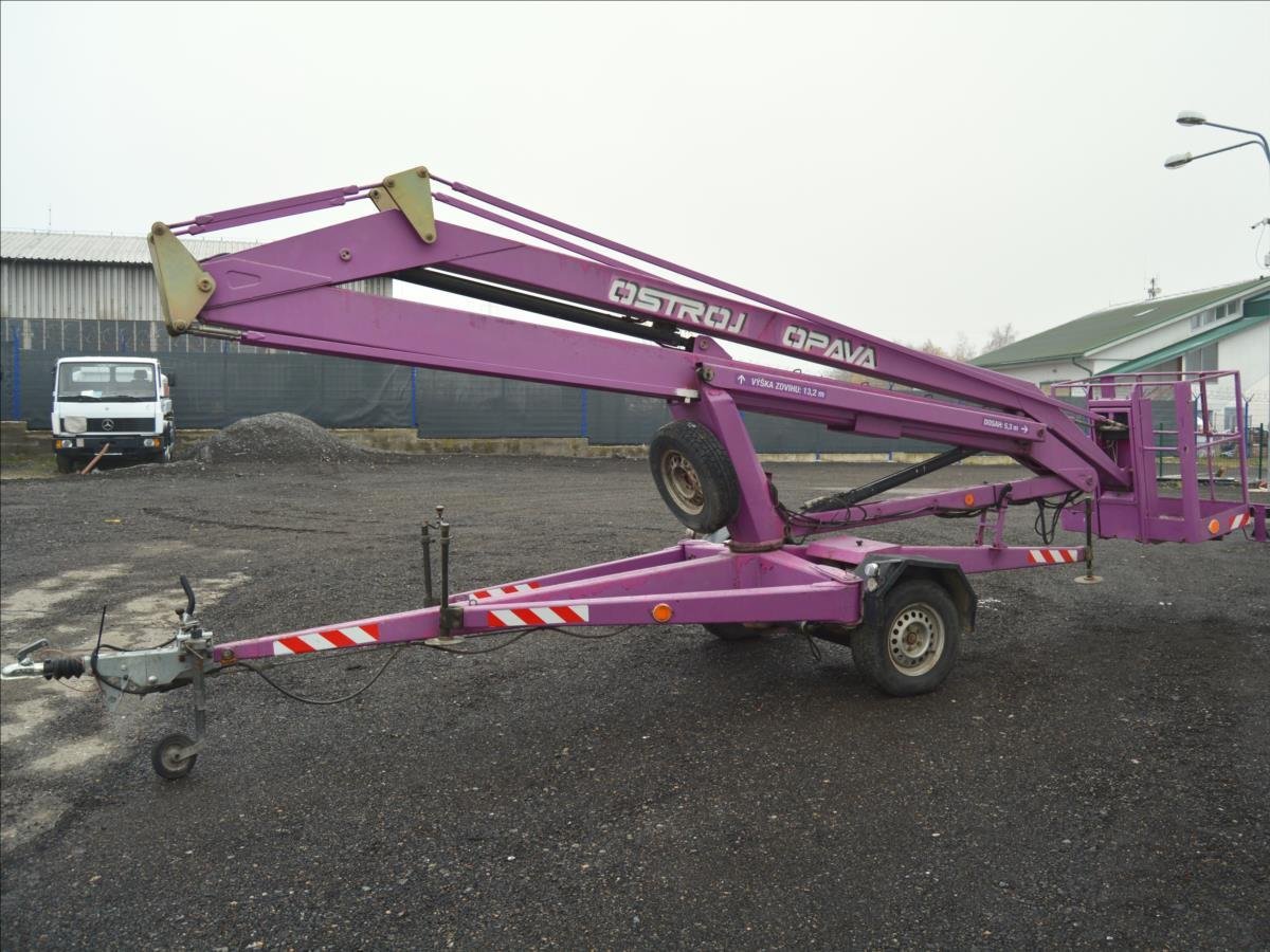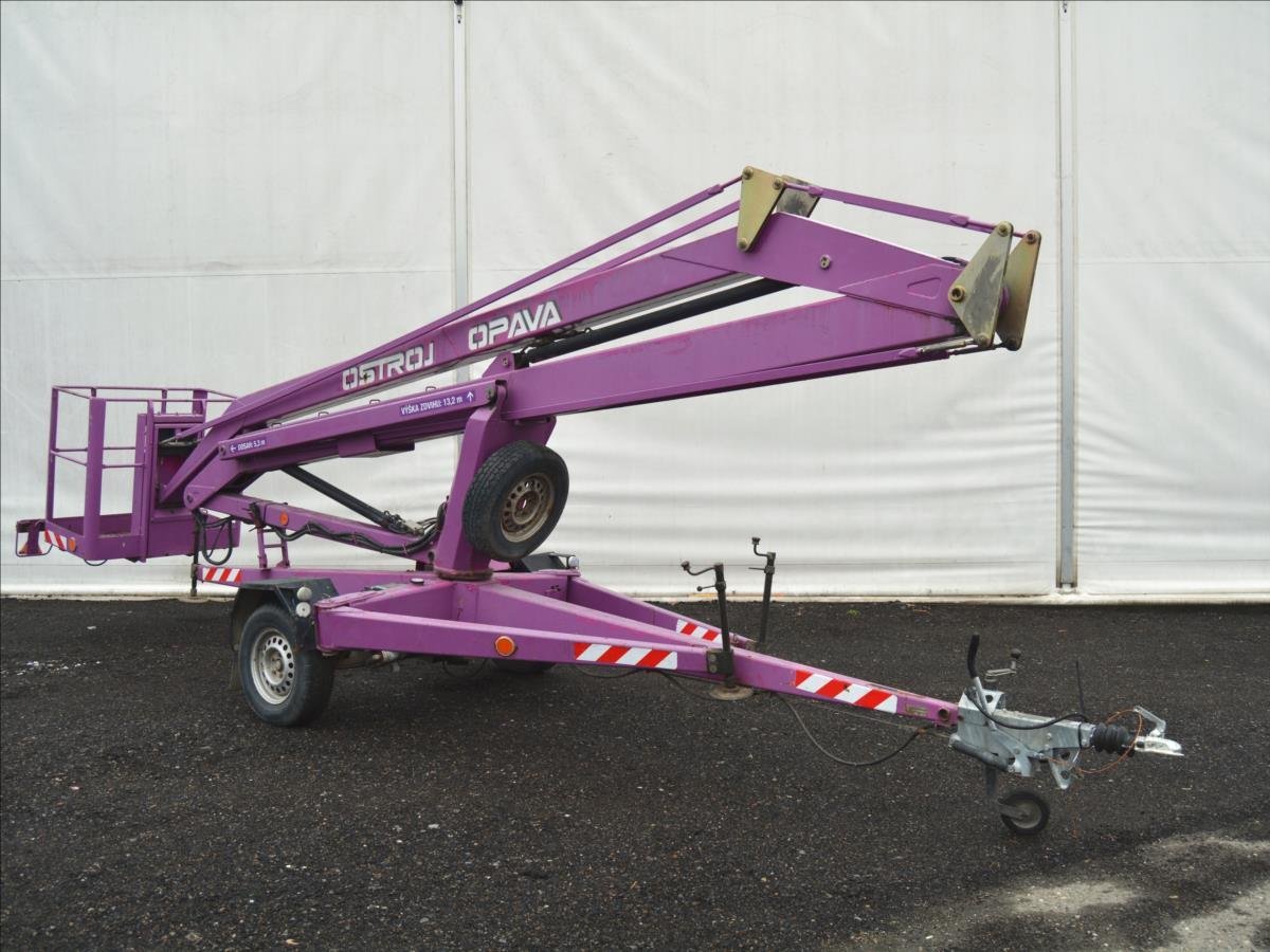 Ostroj OPAVA a.s.; Pracovní plošina; dosah 15m. Hmotnost 1295 kg; hydraulické čerpadlo poháněné elektromotorem. Napájení 220V.