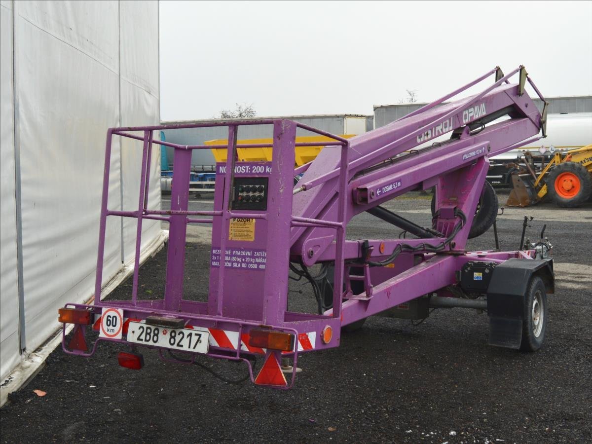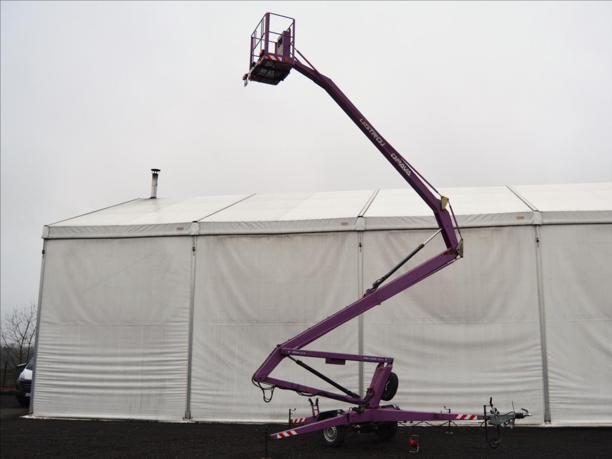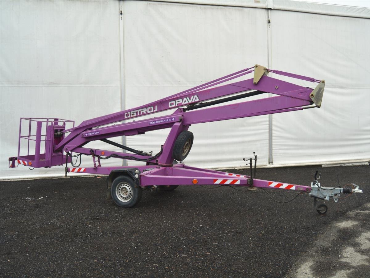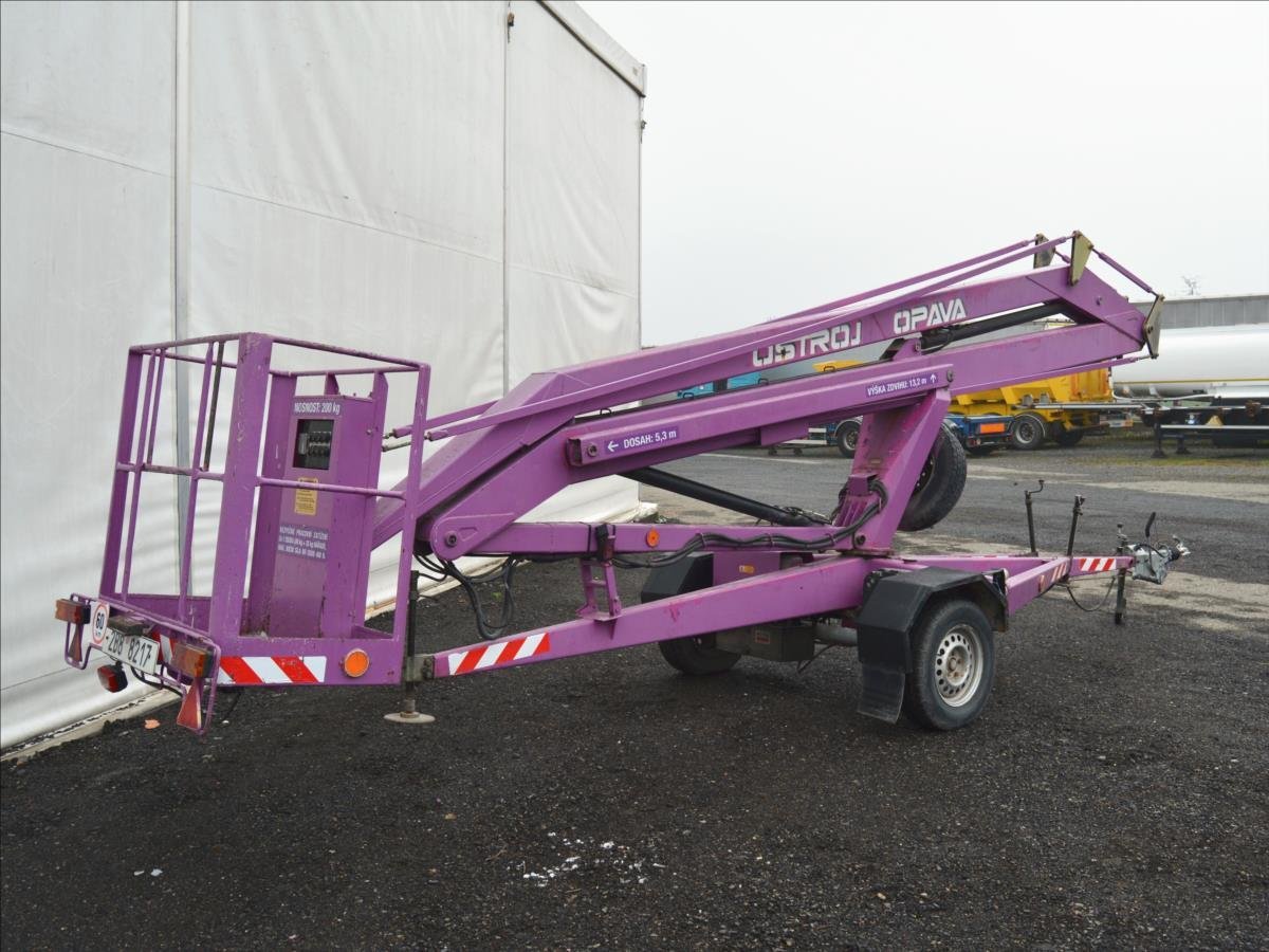 Ostroj OPAVA a.s.; Pracovní plošina; dosah 15m. Hmotnost 1295 kg; hydraulické čerpadlo poháněné elektromotorem. Napájení 220V.