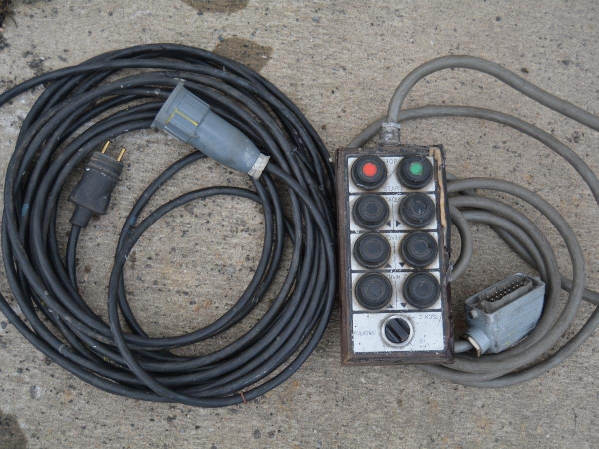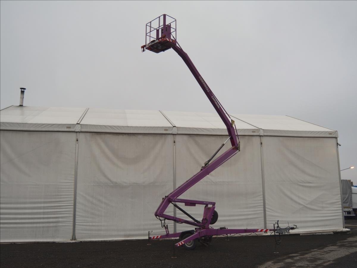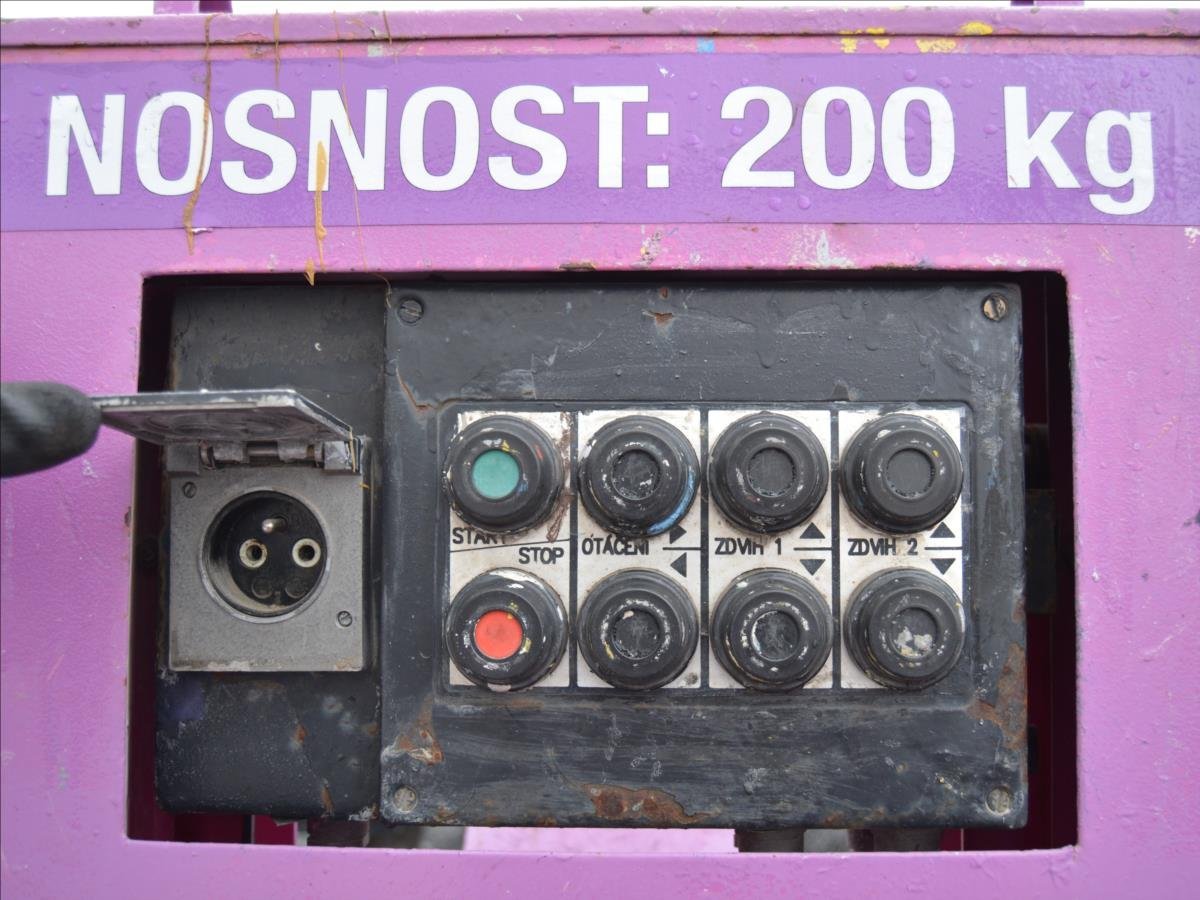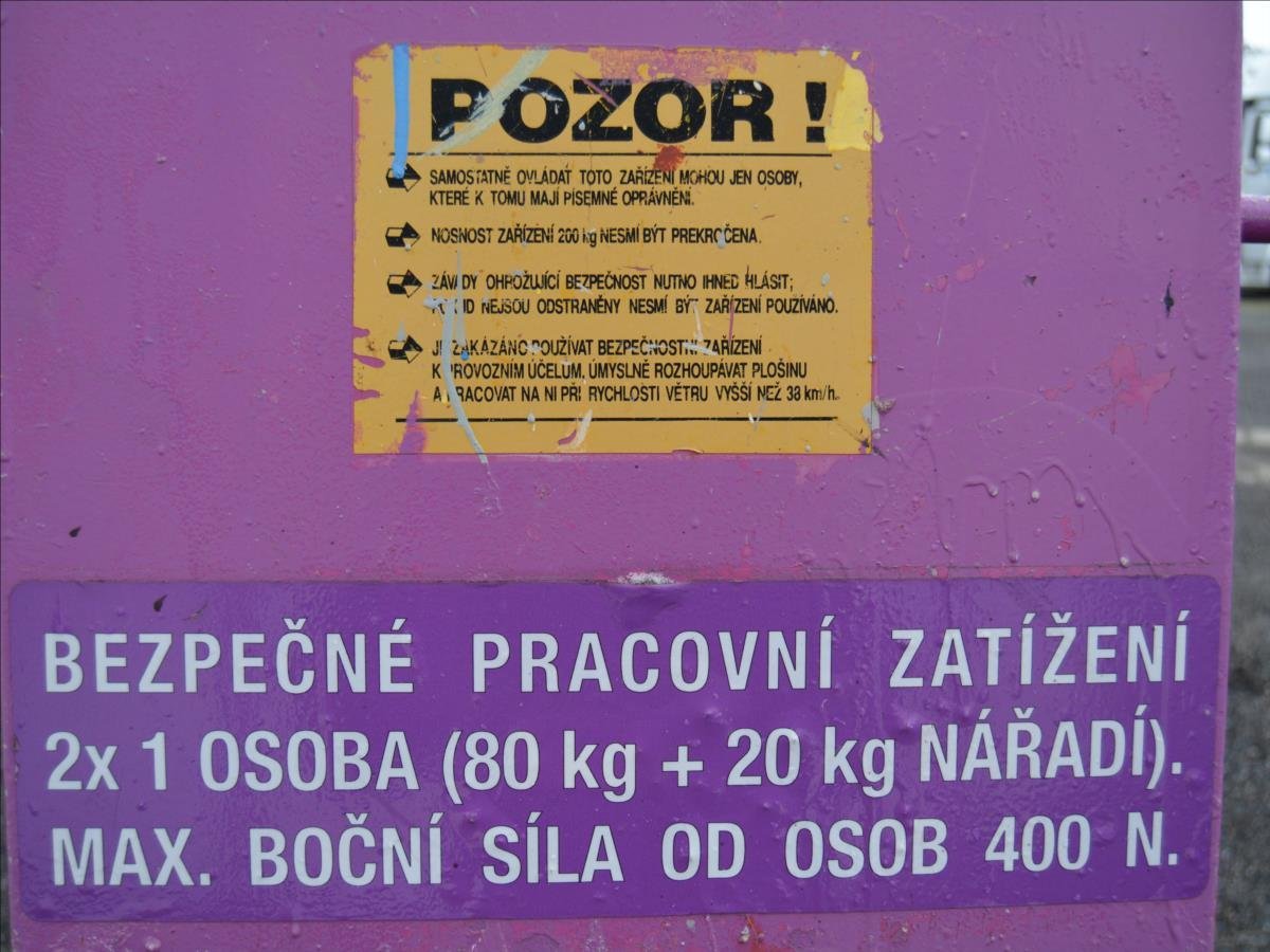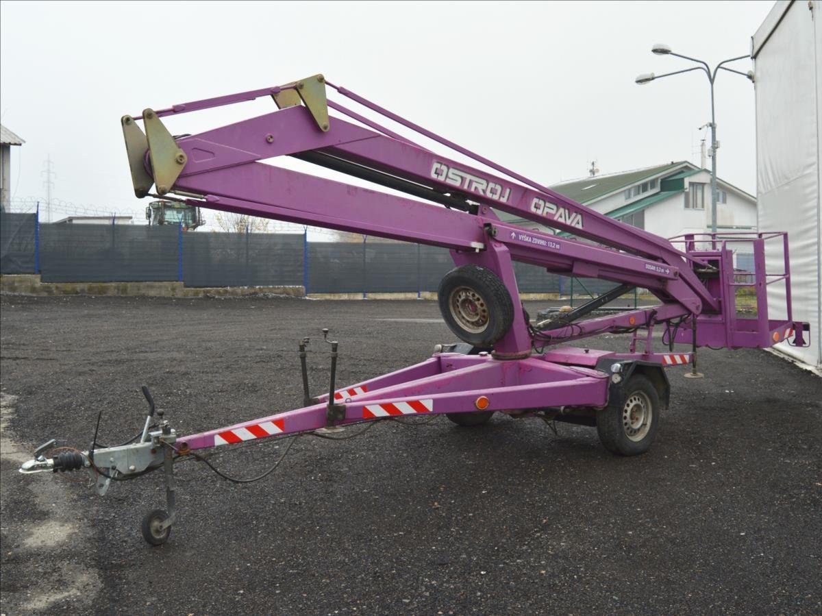 Ostroj OPAVA a.s.; Pracovní plošina; dosah 15m. Hmotnost 1295 kg; hydraulické čerpadlo poháněné elektromotorem. Napájení 220V.