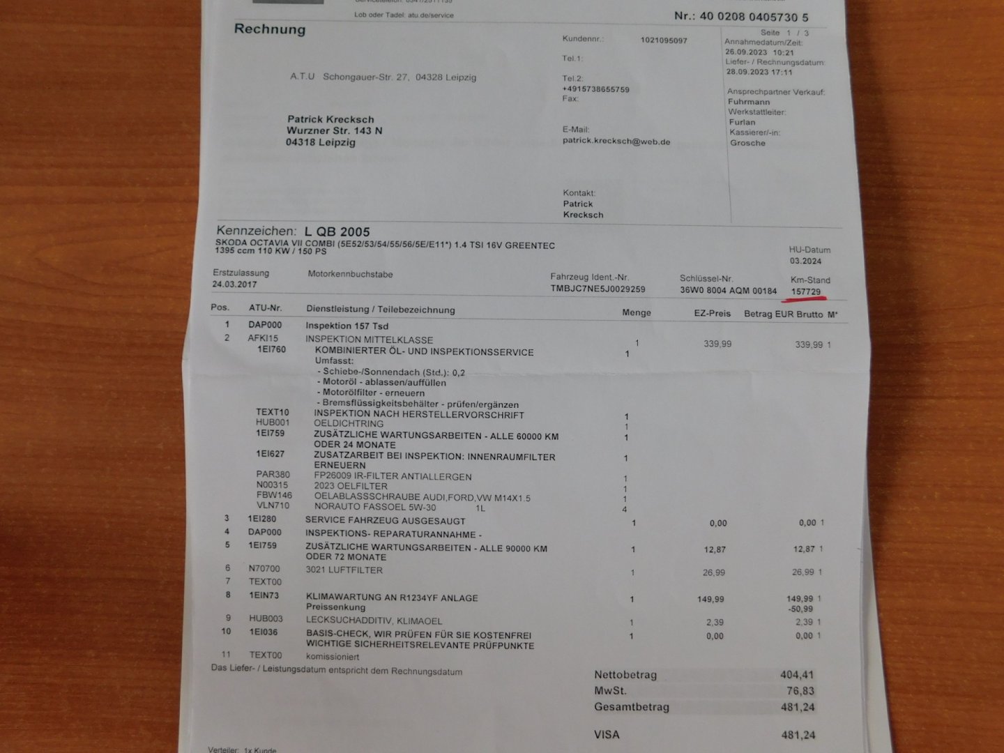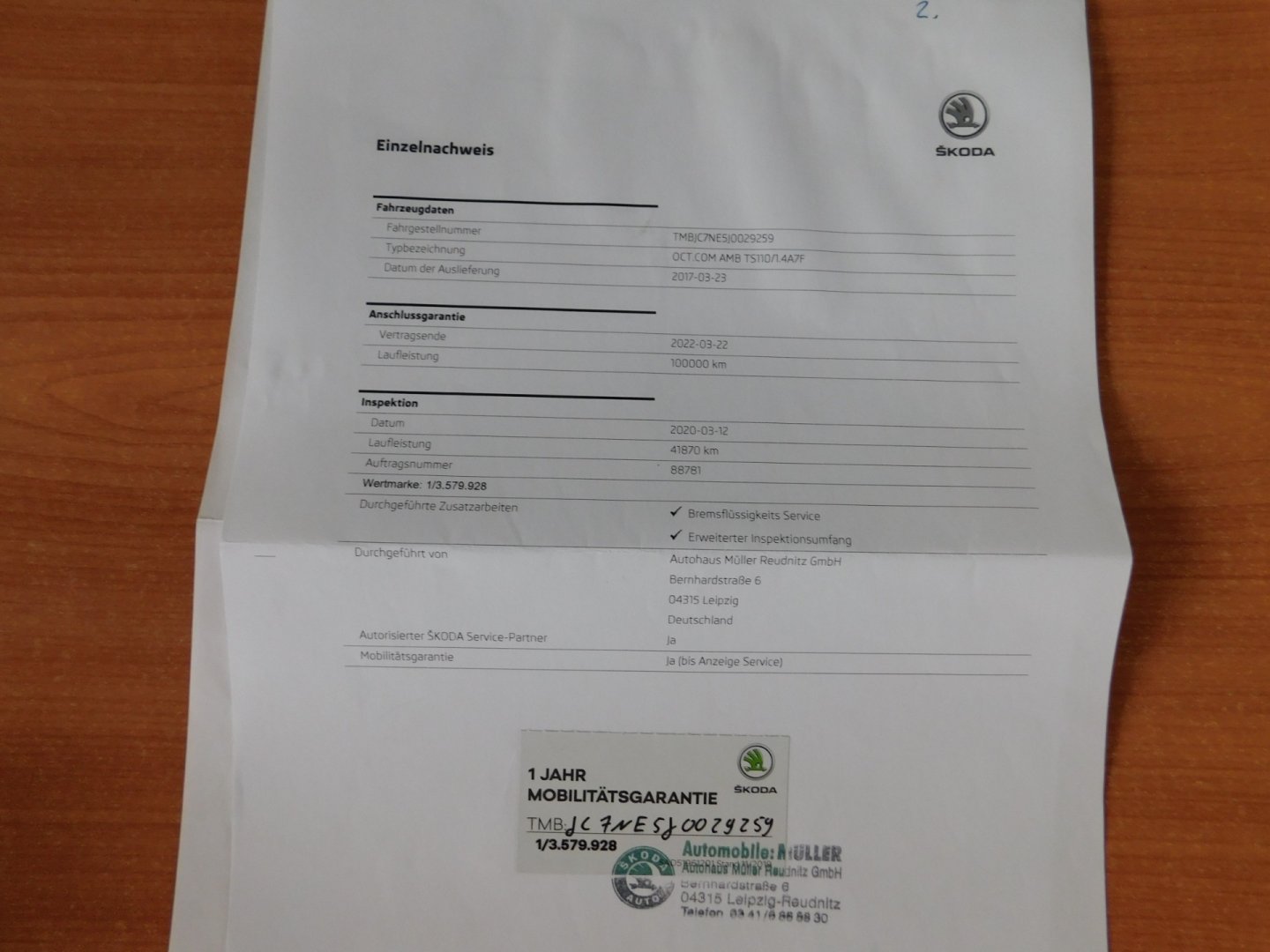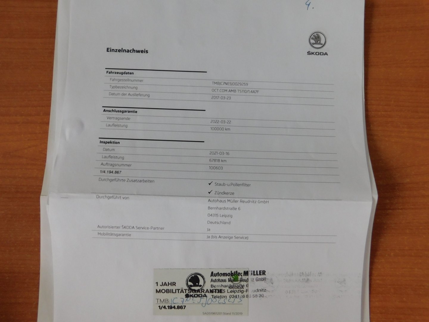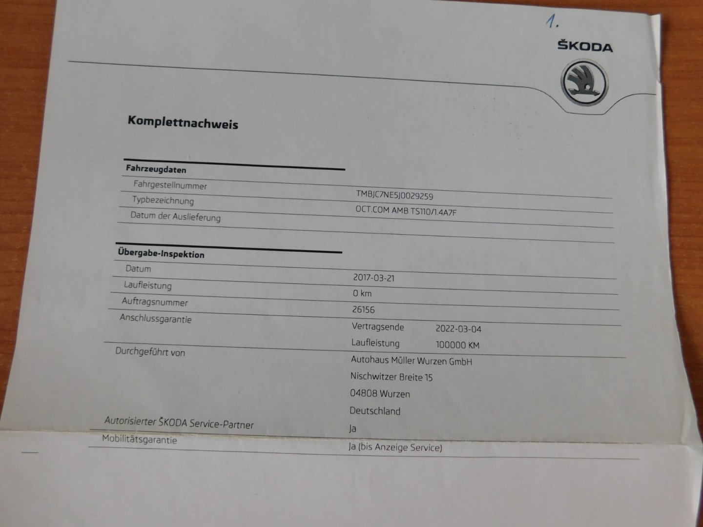 1. Majitel, Nehavarované, Servisní knížka