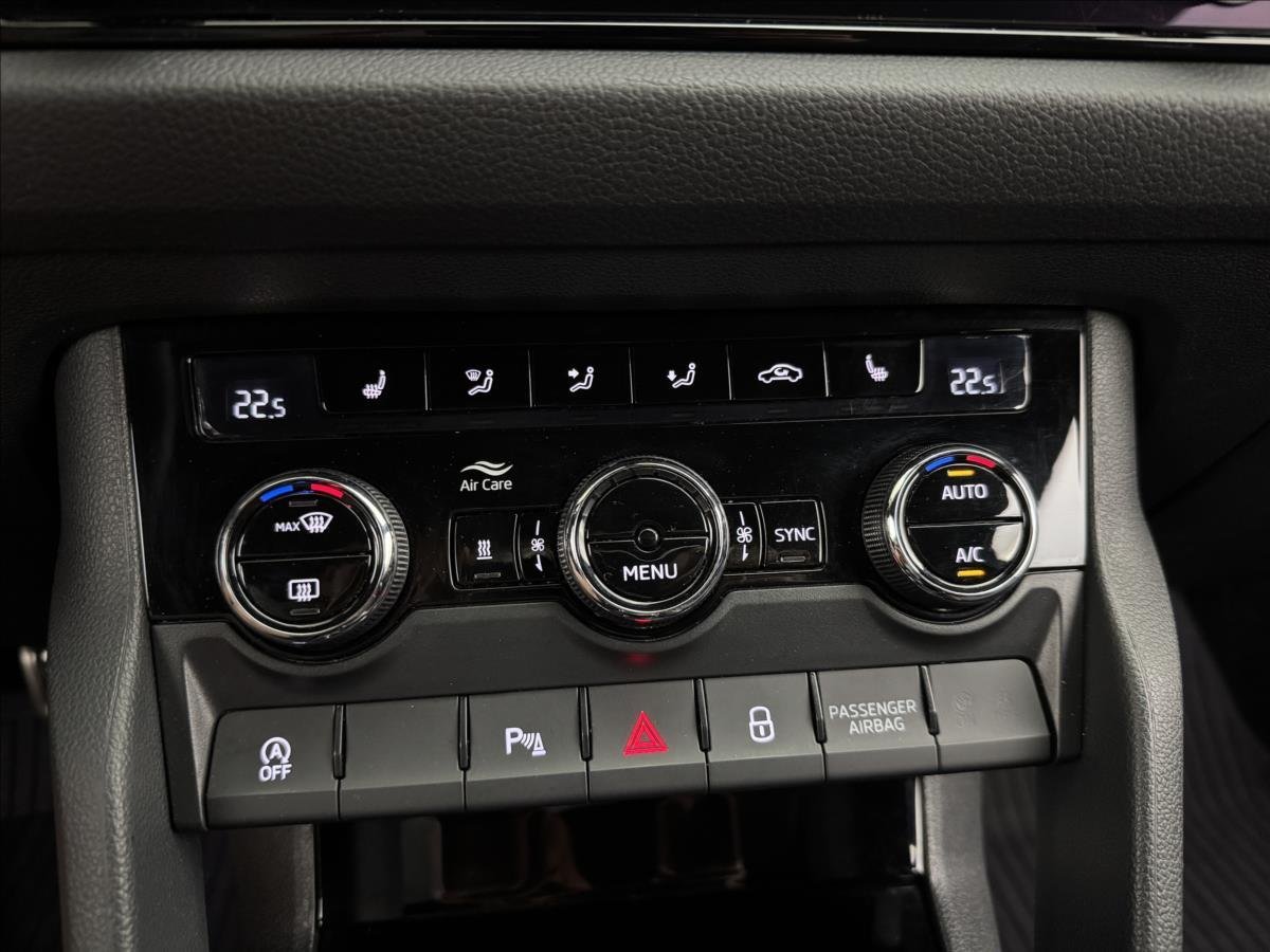| Vnitřní výbava a komfort | Ambientní LED osvětlení interiéru, Klimatizace aut. , Bezklíčkové ovládání, Deaktivace airbagu spolujezdce, Klimatizace dvouzónová, El. sklopná zrcátka, El. parkovací brzda, Klimatizovaná přihrádka, Multifunkční volant, Nastavitelný volant, Nezávislé topení, Posilovač řízení, Pádla řazení na volantu, Senzor opotřebení brzd. destiček, Senzor tlaku v pneumatikách, Venkovní teploměr, Vyhřívaná zrcátka, Vyhřívaný volant |
