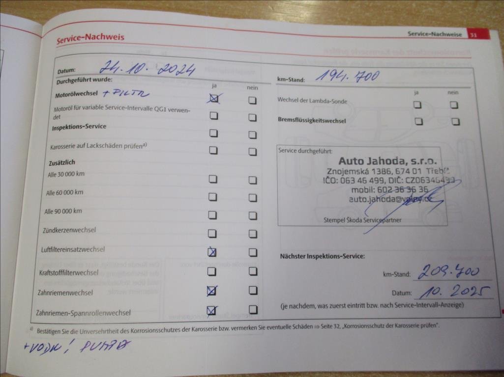 - Servisní knížka