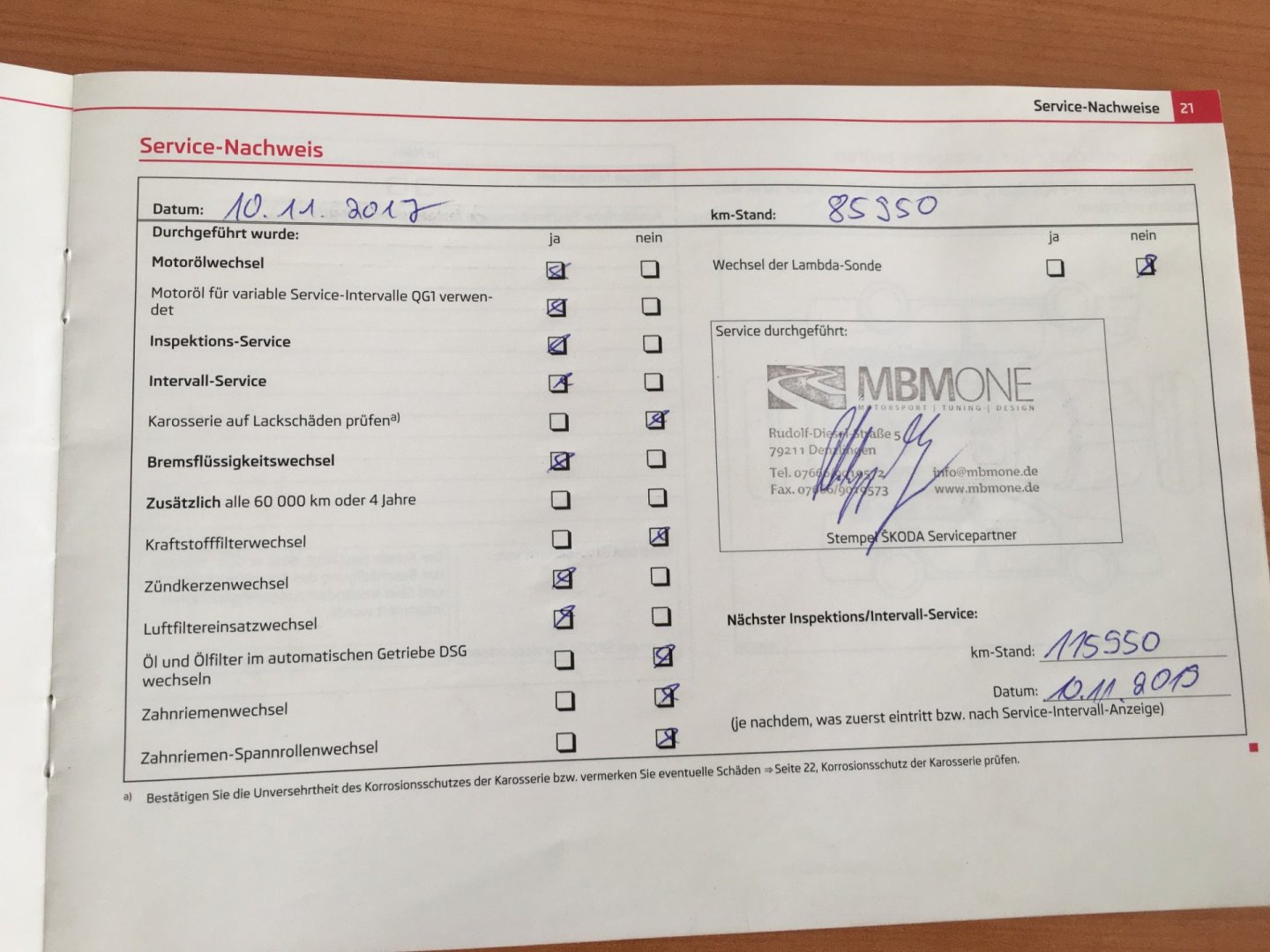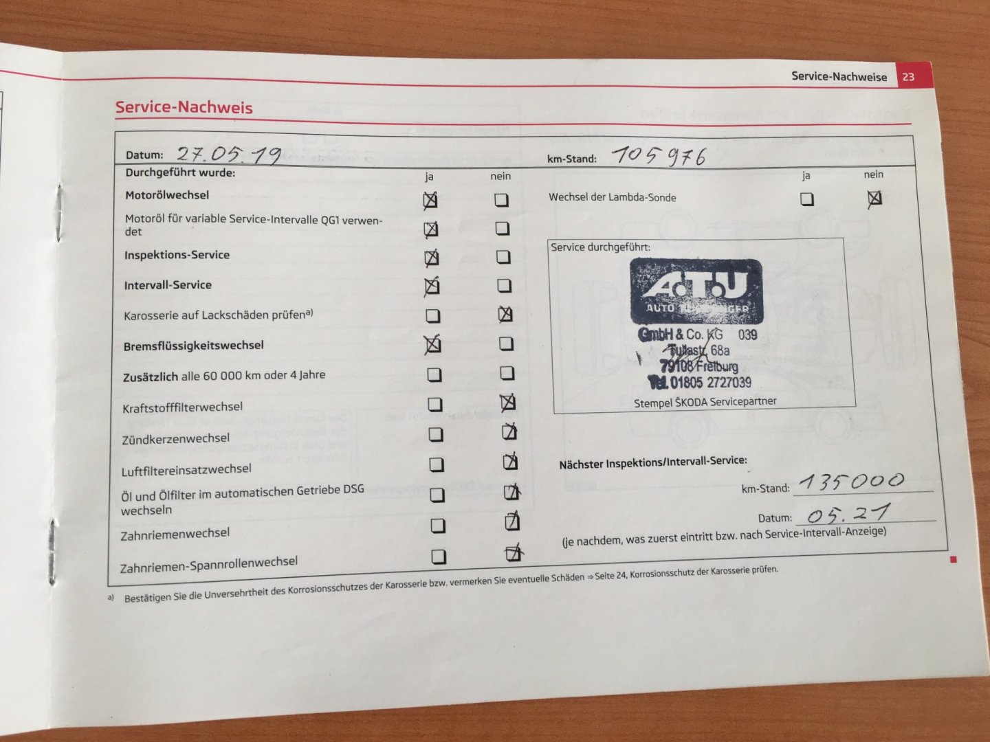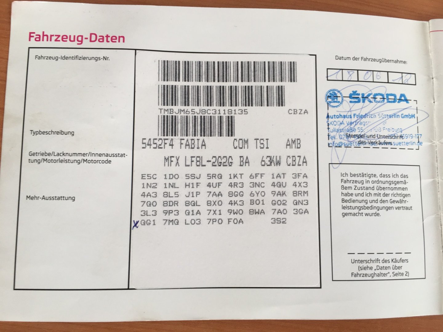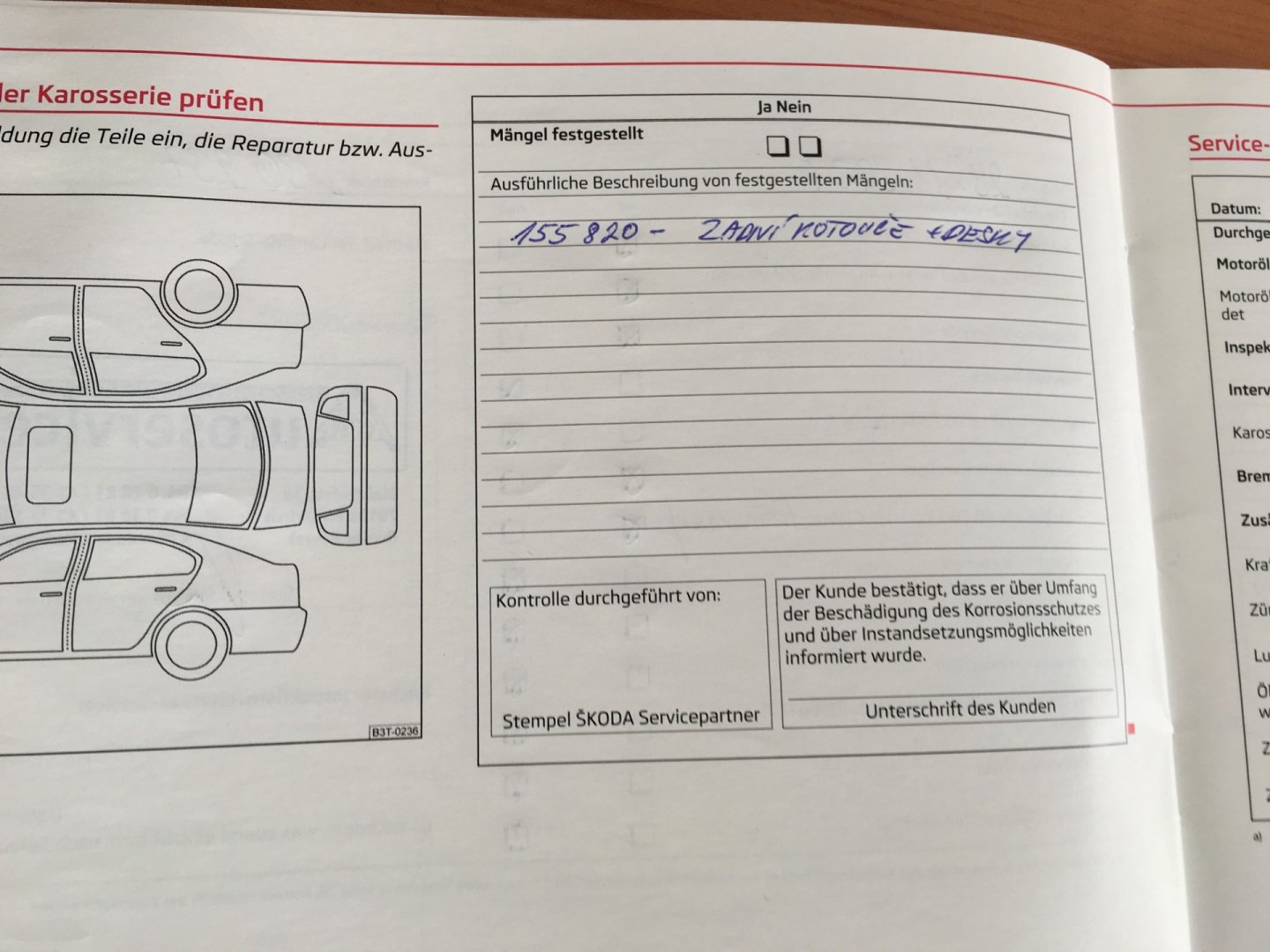 Servisní knížka, 1. Majitel, Nehavarované