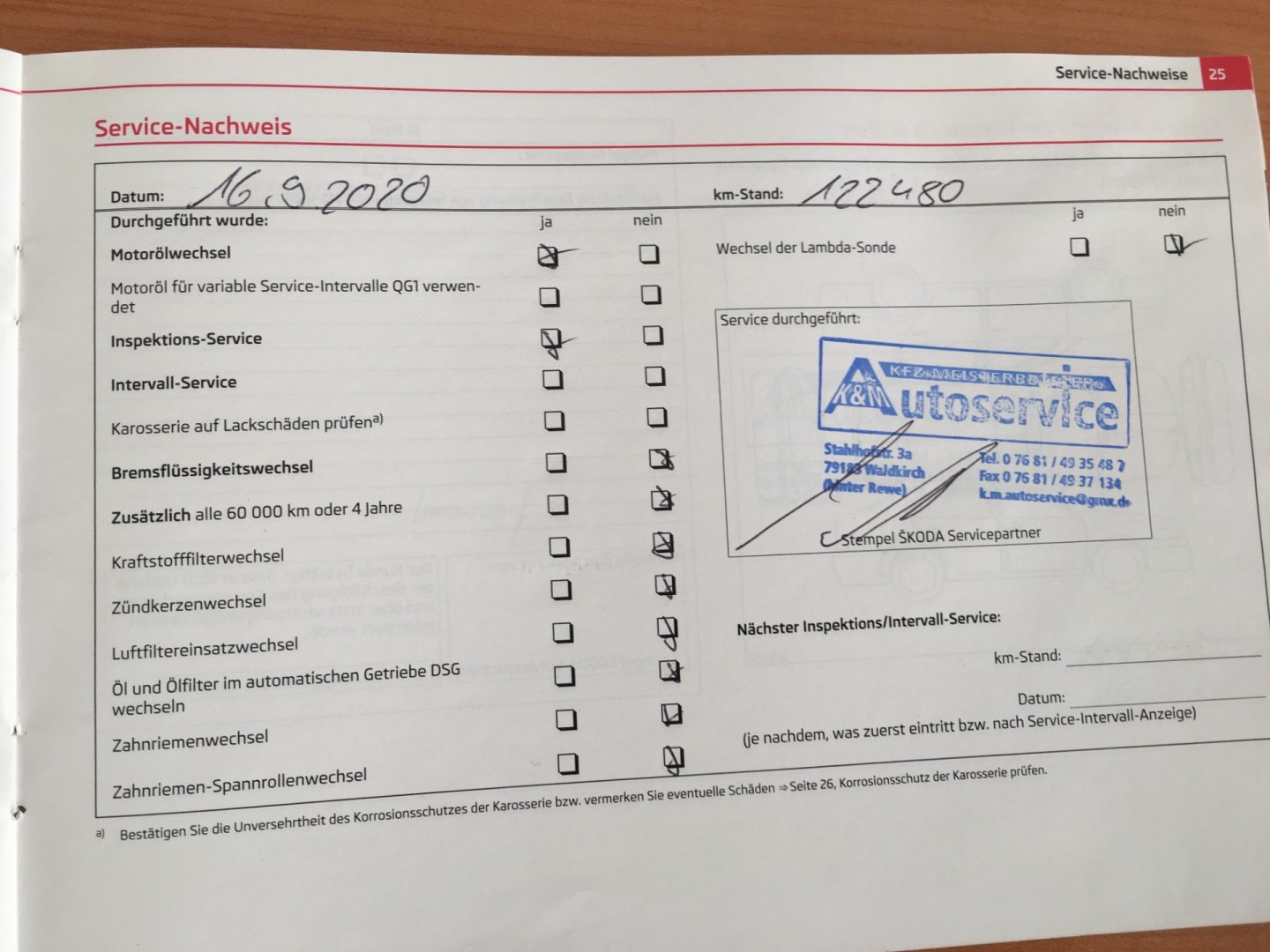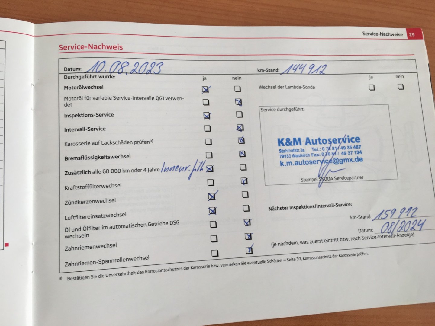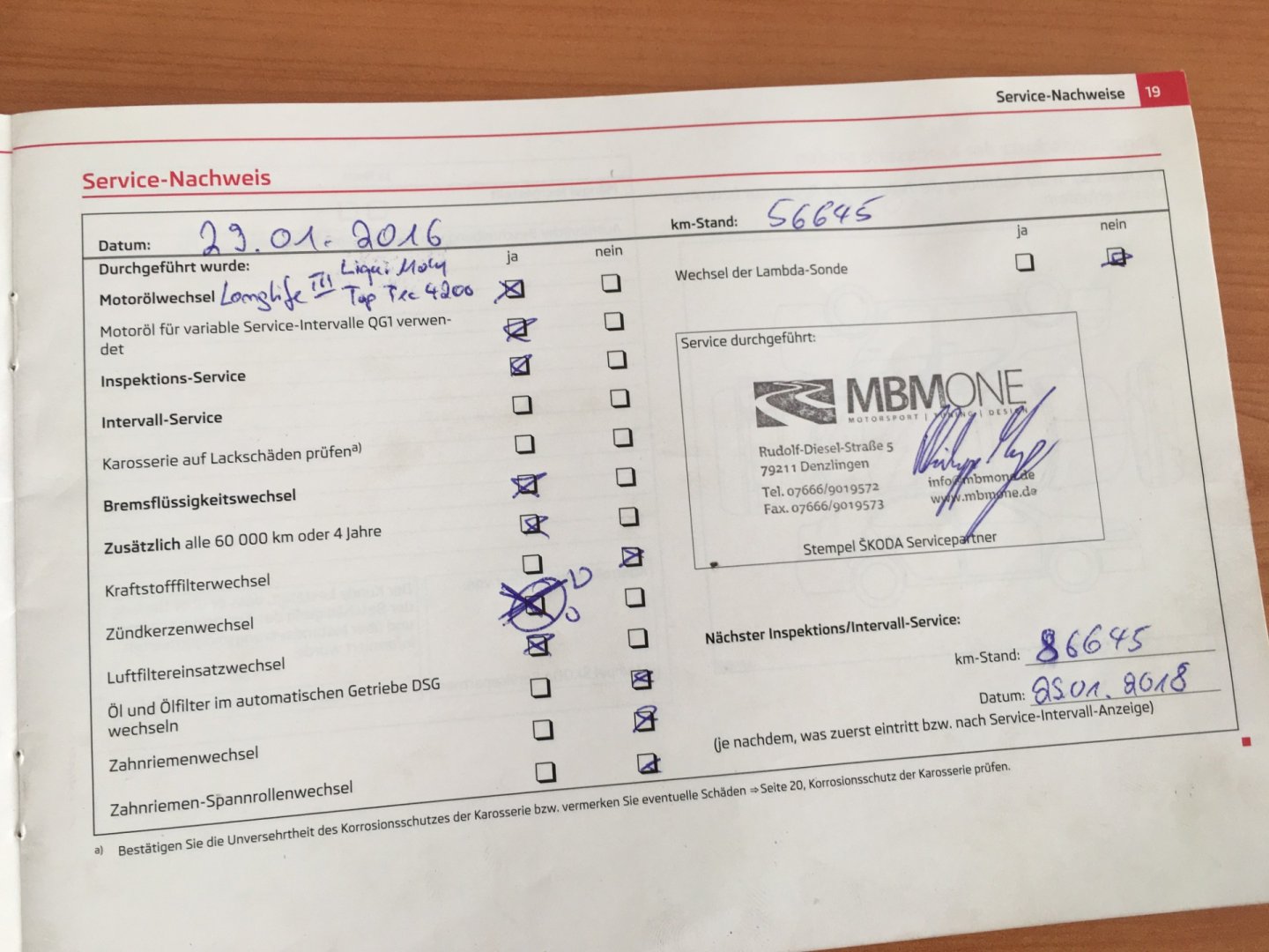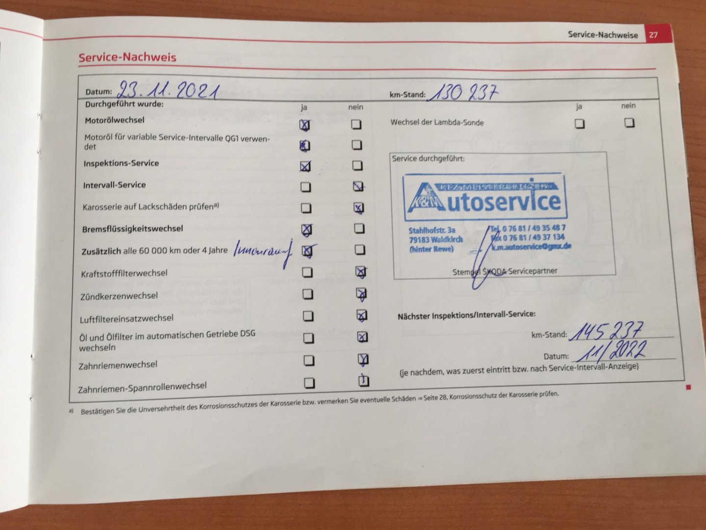 Servisní knížka, 1. Majitel, Nehavarované