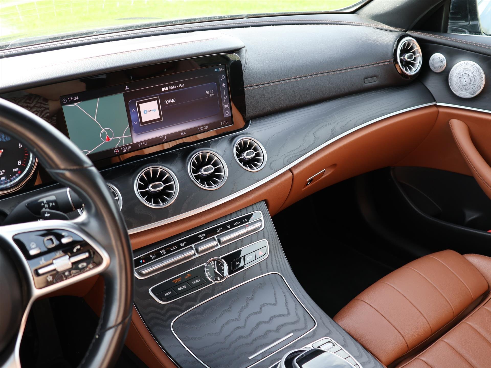 | Vnitřní výbava a komfort | Ambientní LED osvětlení interiéru, Klimatizace aut. , Bezklíčkové ovládání, Deaktivace airbagu spolujezdce, Klimatizace dvouzónová, Dřevěné obložení, El. sklopná zrcátka, Kožené čalounění, Multifunkční volant, Nastavitelný volant, Nezávislé topení, Posilovač řízení, Malý kožený paket, Senzor stěračů, Senzor tlaku v pneumatikách, Střešní okno, Venkovní teploměr, Vyhřívaná zrcátka, Pádla řazení na volantu |