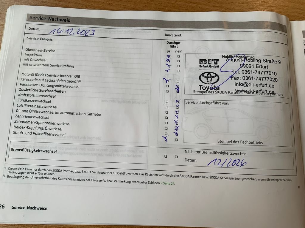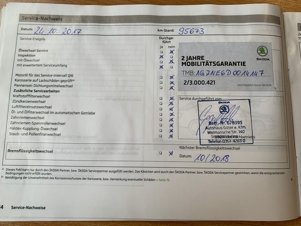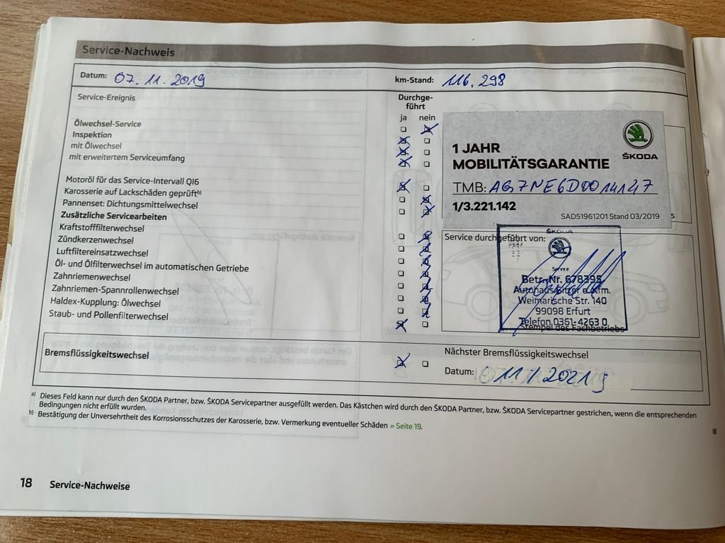 - Servisní knížka