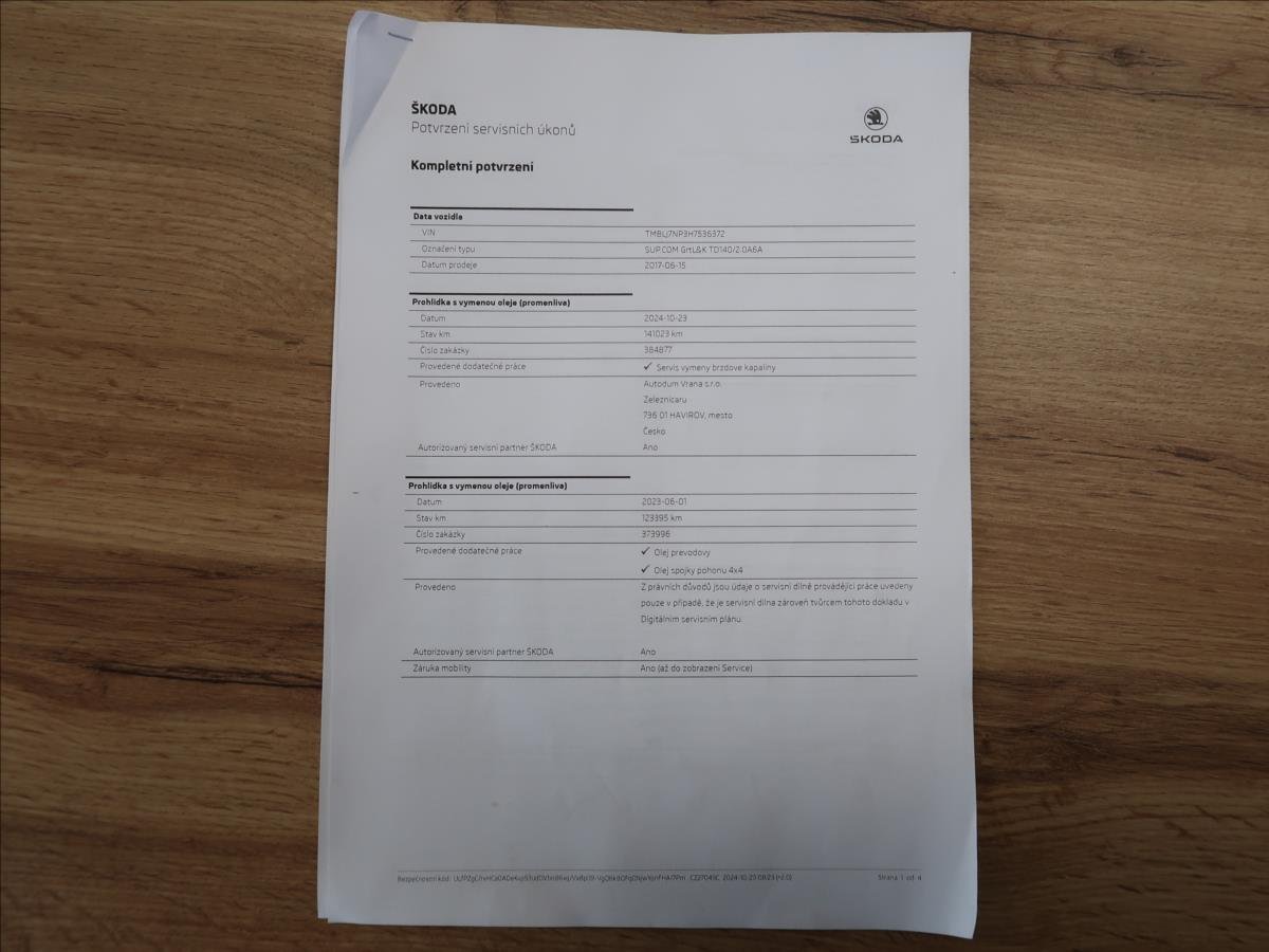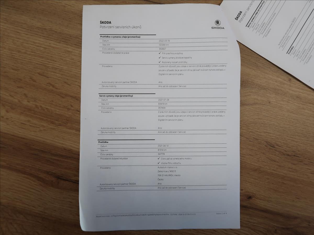 První majitel; Úvěr možný; Cena bez DPH: 330 495; -Kč. Vozidlo zakoupeno jako nové v České republice; po prvním majiteli; řádně vedená servisní kniha; pravidelný servis v autorizovaném servise Škoda; výbava L&K; pohon 4x4; automatická převodovka DSG; dvouzónová automatická klimatizace; vyhřívaná všechna sedadla; parkovací senzory přední + zadní; automatické parkovaní; bi-xenonové světlomety; satelitní navigace; adaptivní tempomat; druhá sada disků + zimní pneu; možný odpočet DPH; možný protiúčet; možný prodej na splátky.