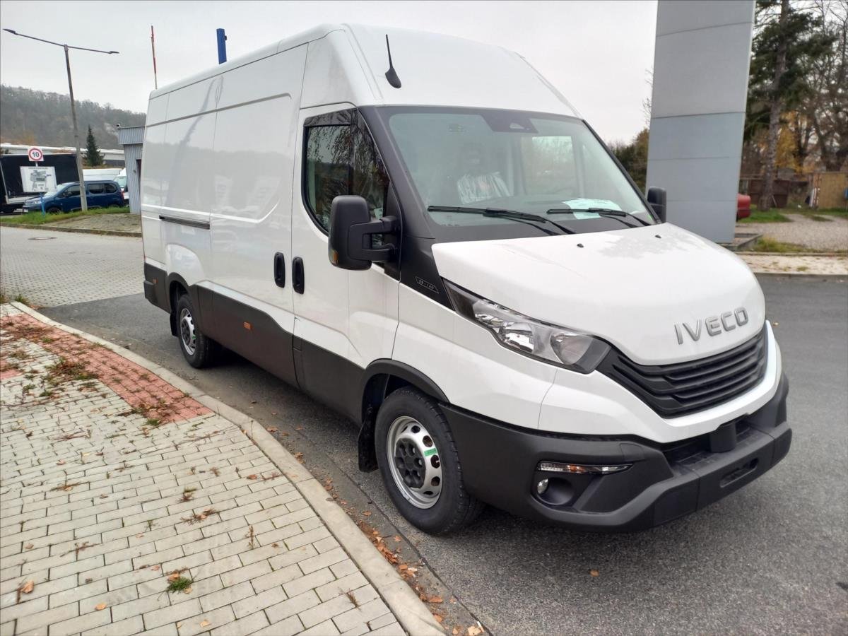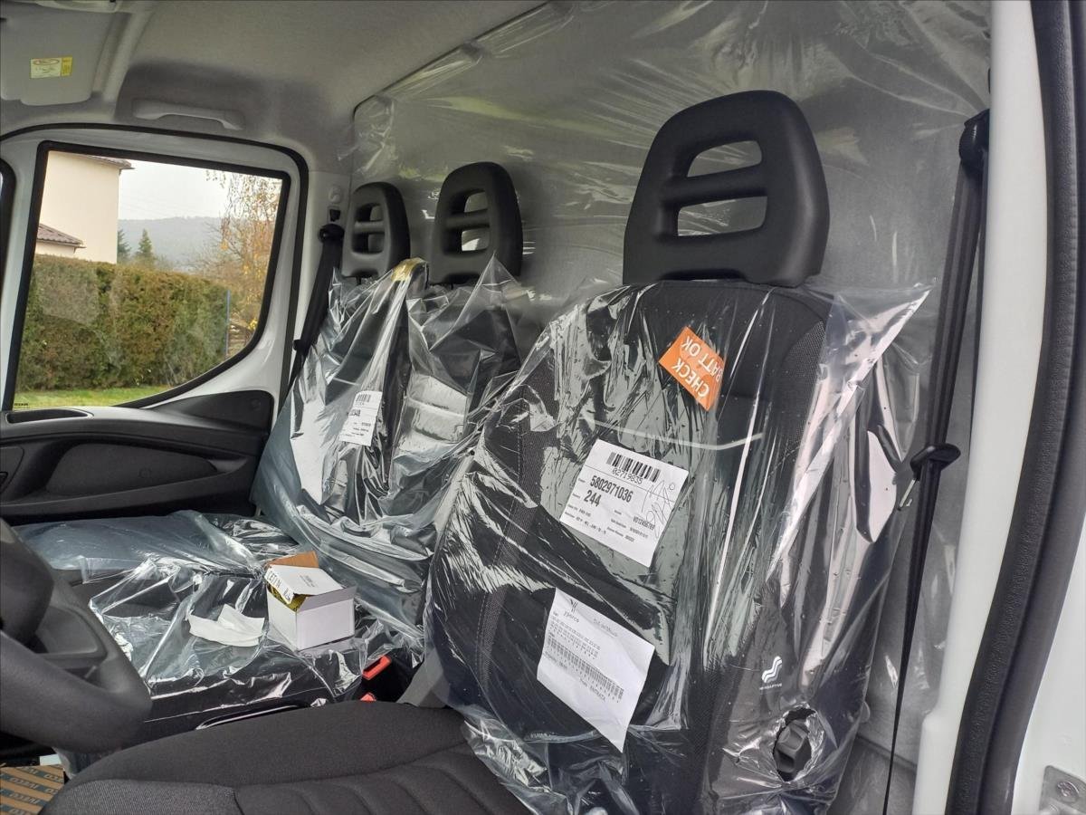 Leasing možný; Spotřebitelský úvěr; Výška nákladního prostoru 190 cm; délka ložné plochy 351 cm. Příplatková:Paket Comfort: Kompresor klimatizace; Klimatizace ovládaná manuálně; 7'' rádio s dotykovým displejem - s Bluetooth; USB zásuvka; Tempomat; Mlhová světla; Přídavný nastavitelný omezovač rychlosti; Zásuvka pro přívěs 12V 13pin DIN - příprava pro TZ; Otevírání zadních dveří o 250°; Držák náhradního kola pod rámem vzadu; Náhradní kolo; Odpružené sedadlo řidiče; loketní a bederní opěrka; celoroční pneumatiky 225/65R16C. Standardní:Baterie 105Ah / 950A (HD pro Start-Stop); Denní světla optim. Životnost; Omezovač rychlosti 160 km/h; Zásuvka pro nástavbáře 30A a 50A; Širší lemy předních blatníků; Monitorování tlaku v pneu; vyhřívaná zrcátka; Akustická signalizace zpátečky; Kabina Daily šířka 2000 mm; Přední a zadní zástěrky; Determální tónované čelní sklo; Alternátor 220A / 12V; Filtr pevných částic (DPF); Protihlukové kryty; Ohřev odvětrání motoru (std); Nabíjení baterie SMART; Vyhřívání palivového filtru; Hliníkový chladič motoru; Převod nápravy 3.615; Manuální převodovka; Funkce Start-Stop; Airbag řidiče + spolujezdce; Centrální zamykání s dálkovým ovládáním; Elektrické stahování oken; Věnec volantu z měkčího plastu; Izolace zad. stěny v kabině; Reflexní varovný trojúhelník; Dva parkovací klíny v držácích; Osvětlení náklad. prostoru LED; Schůdek k zadním dveřím; Celková hmotnost přívěsu 3500 kg; Zatížení 1900-2240 kg; Nádrž AdBlue 20 L za schůdkem; Zadní parabolická pera (HD pro 35C); Ocelové disky; Standardní opěrky hlavy; Potah sedadel textilní; Dvojsedad. spoluj. s 2 tříbod. pásy; schránka; AEBS + CITY BRAKE Vozidlo skladem k okamžitému dodání.