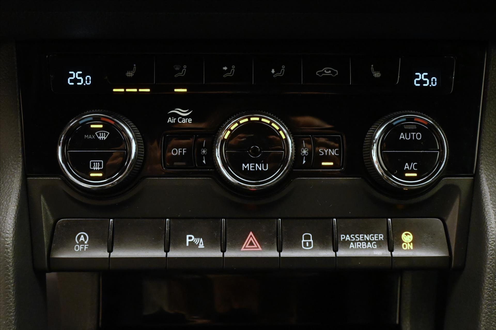 | Vnitřní výbava a komfort | Ambientní LED osvětlení interiéru, Bezklíčkové ovládání, Deaktivace airbagu spolujezdce, Klimatizace dvouzónová, El. sklopná zrcátka, El. parkovací brzda, Klimatizovaná přihrádka, Multifunkční volant, Nastavitelný volant, Posilovač řízení, Senzor stěračů, Senzor tlaku v pneumatikách, Venkovní teploměr, Vyhřívaná zrcátka, Zadní loketní opěrka |
