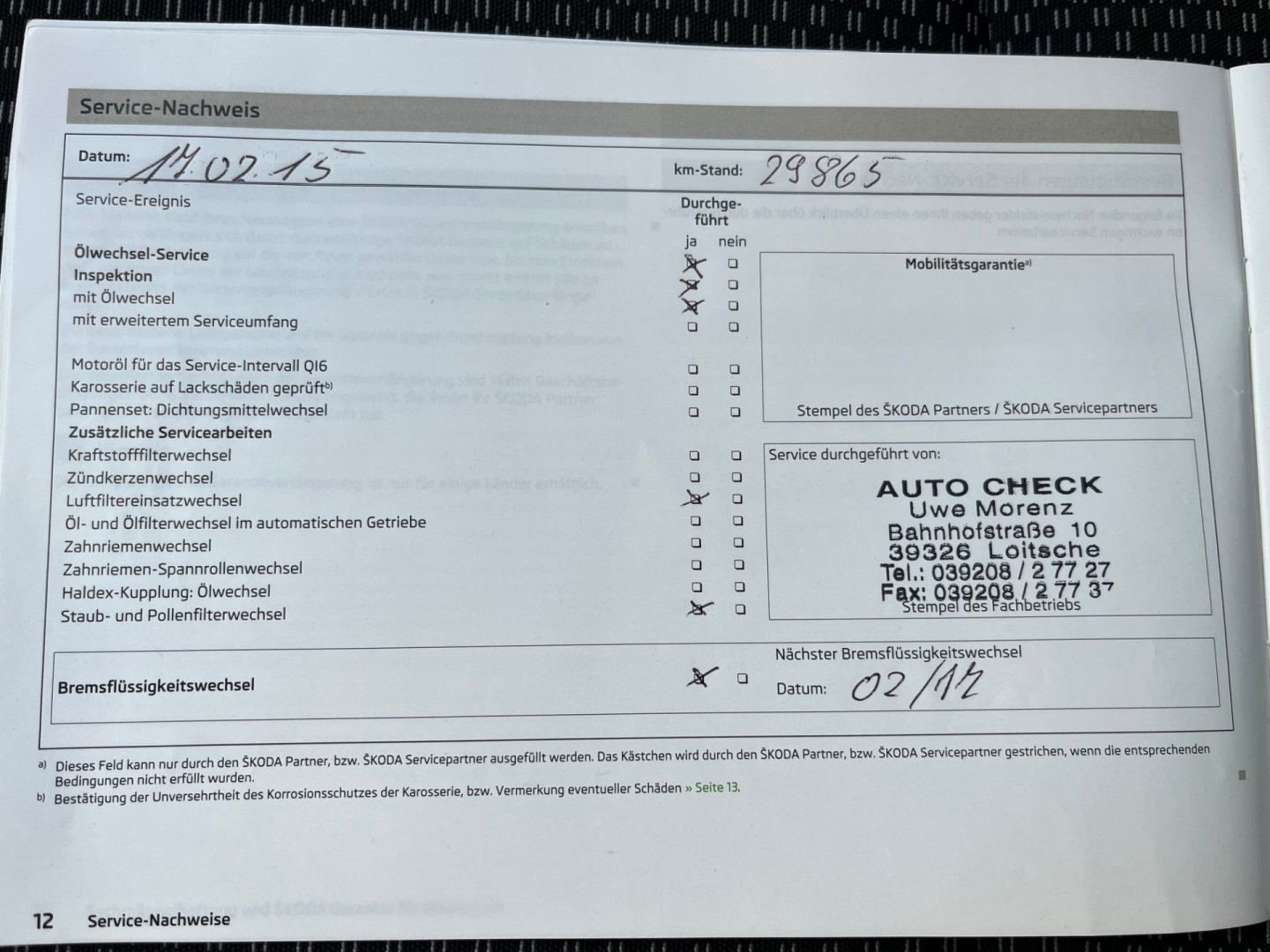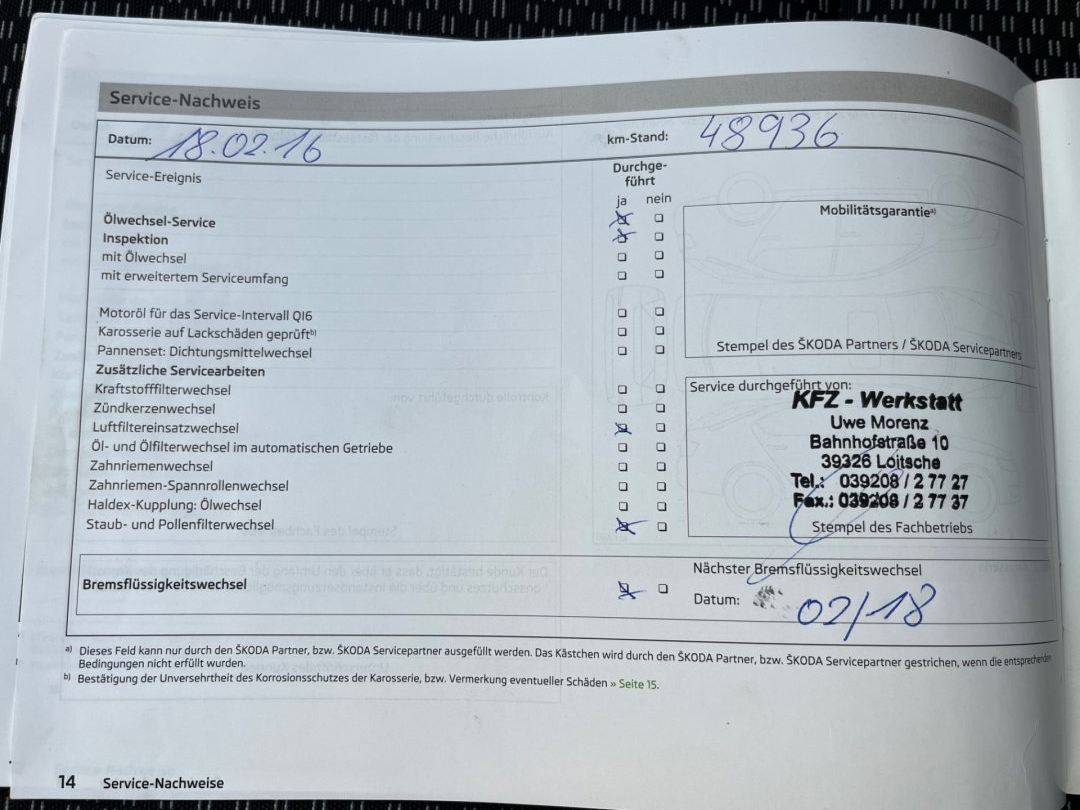 - Servisní knížka