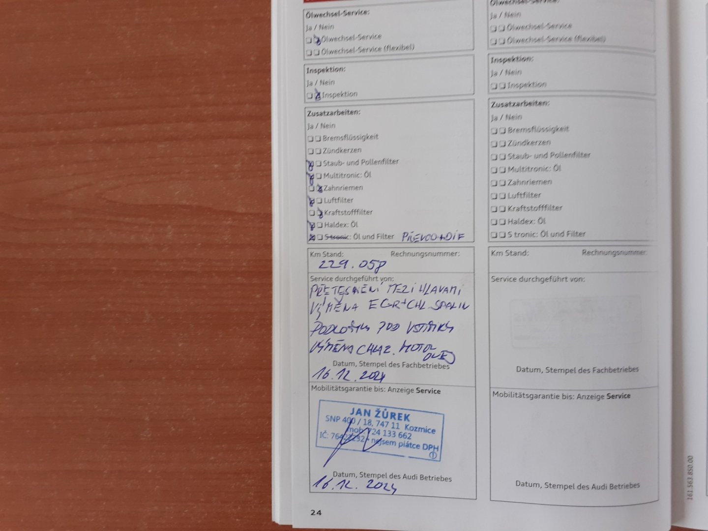 - Servisní knížka