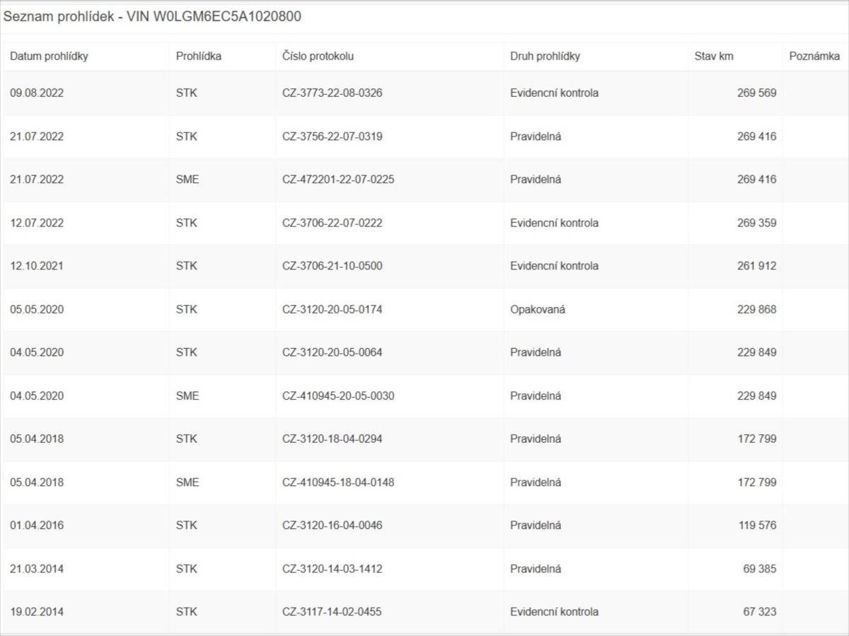 Historie vozidla