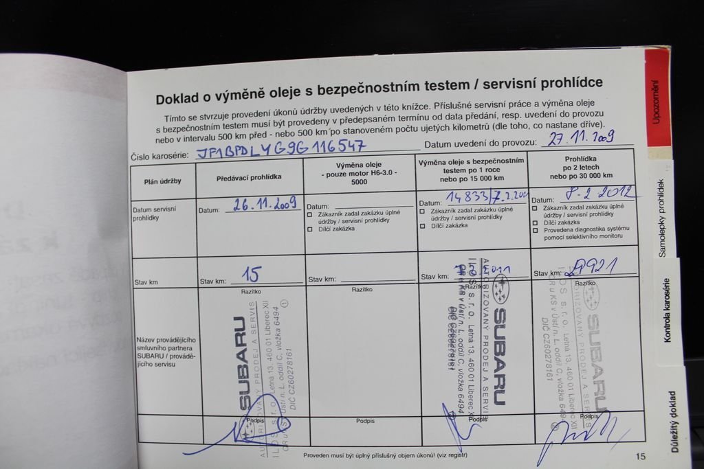 - Servisní knížka