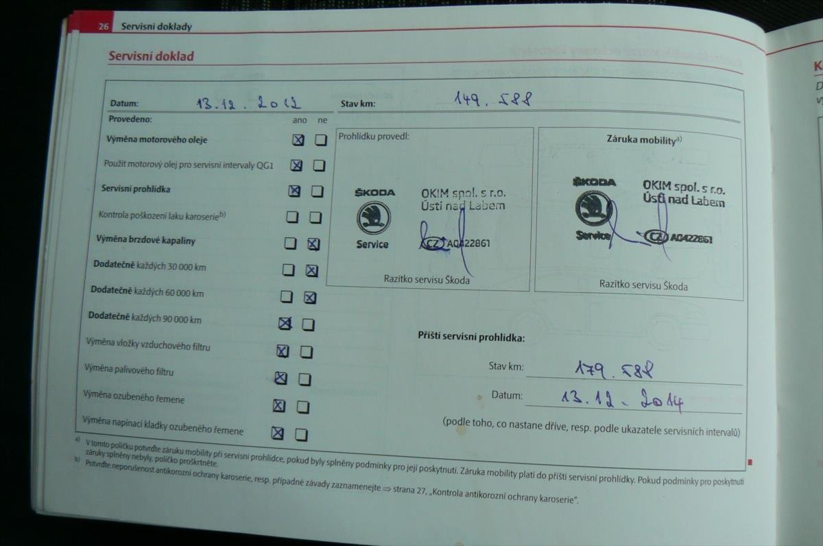 - Servisní knížka