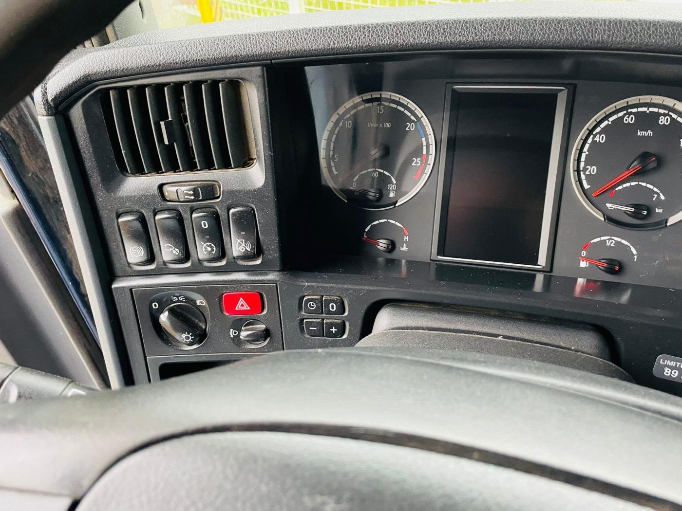 standart, tři-nápravy, prostřední náprava zvedací natáčecí, automat, retardér, přední náprava pružiny, vzadu vzduch, el. okénka a zrcátka, klimatizace, nezávislé topení, lednička, dvě postele, dvě nádrže, hydraulika, pneu vpředu 80% a vzadu 50%
