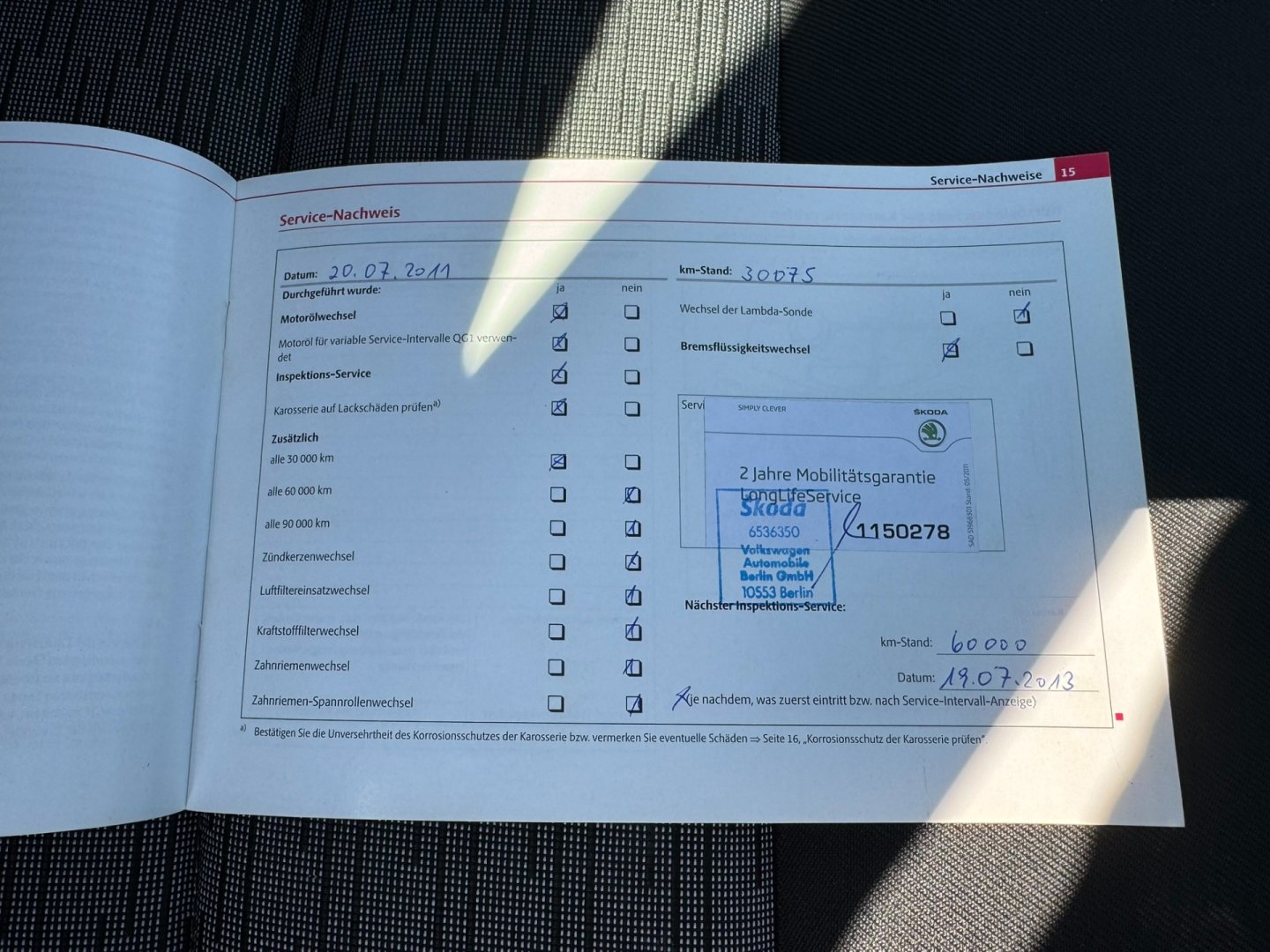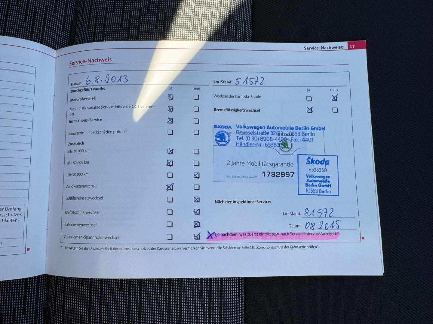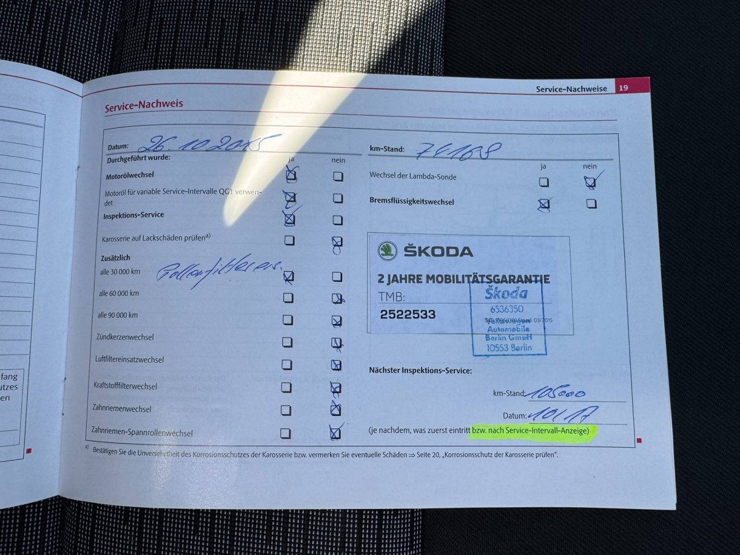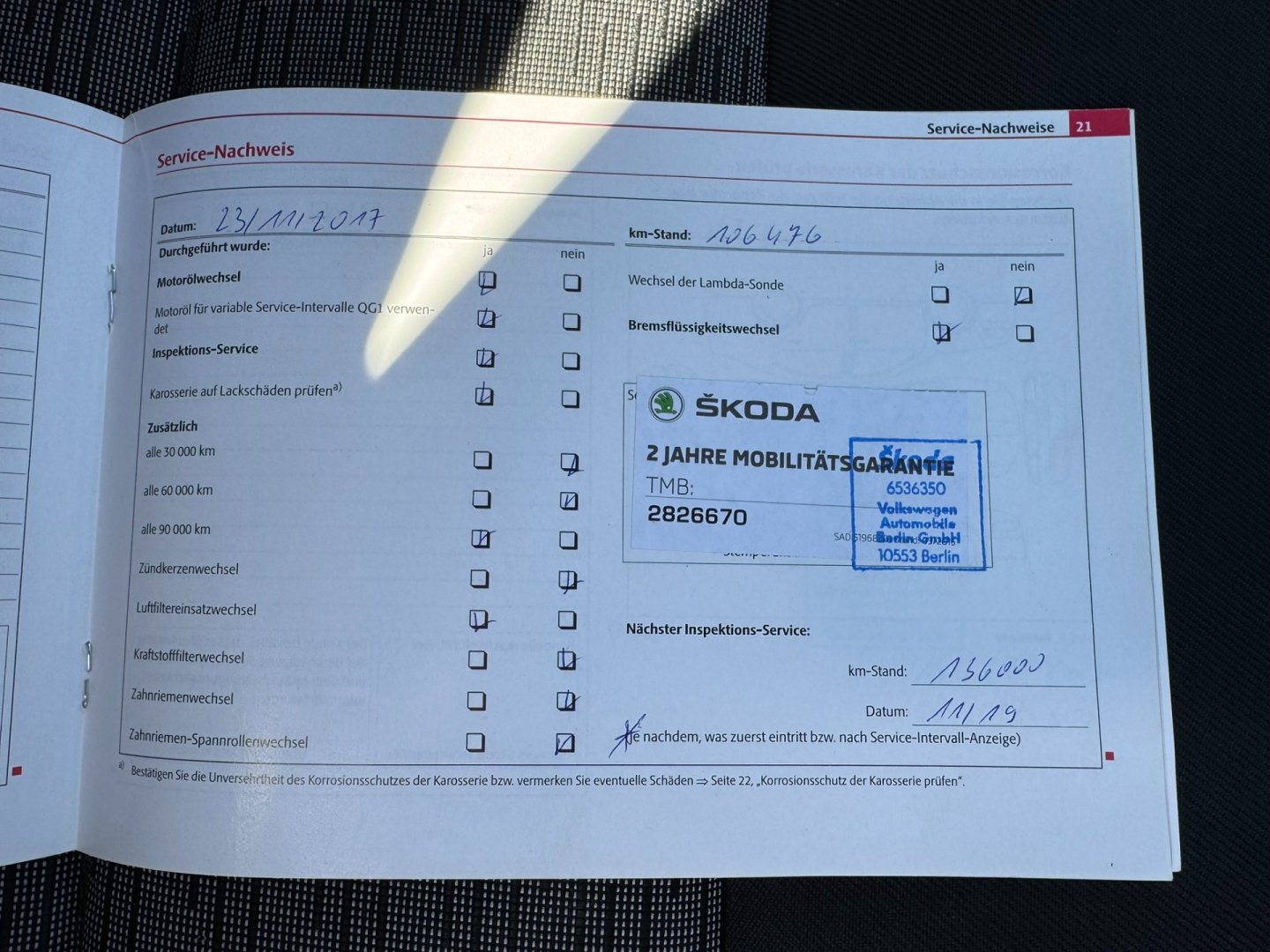 - Servisní knížka
