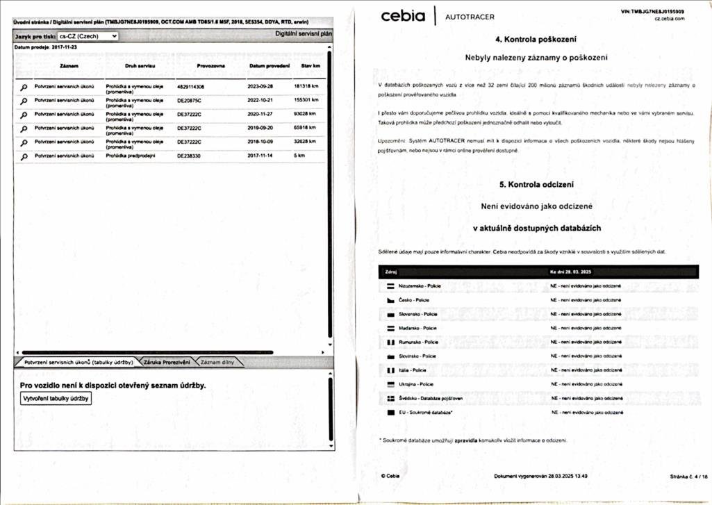 - Servisní knížka