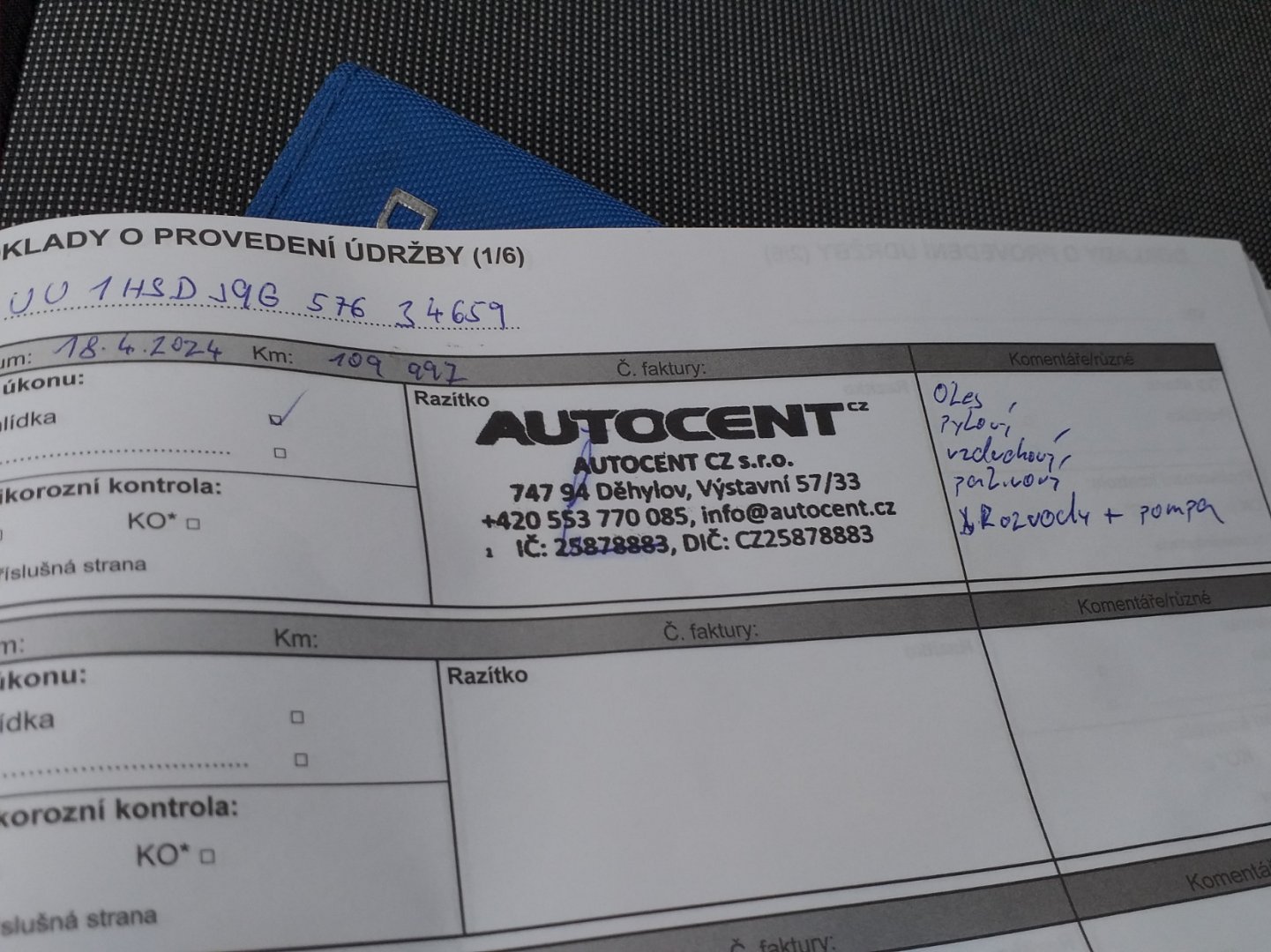 - Servisní knížka
