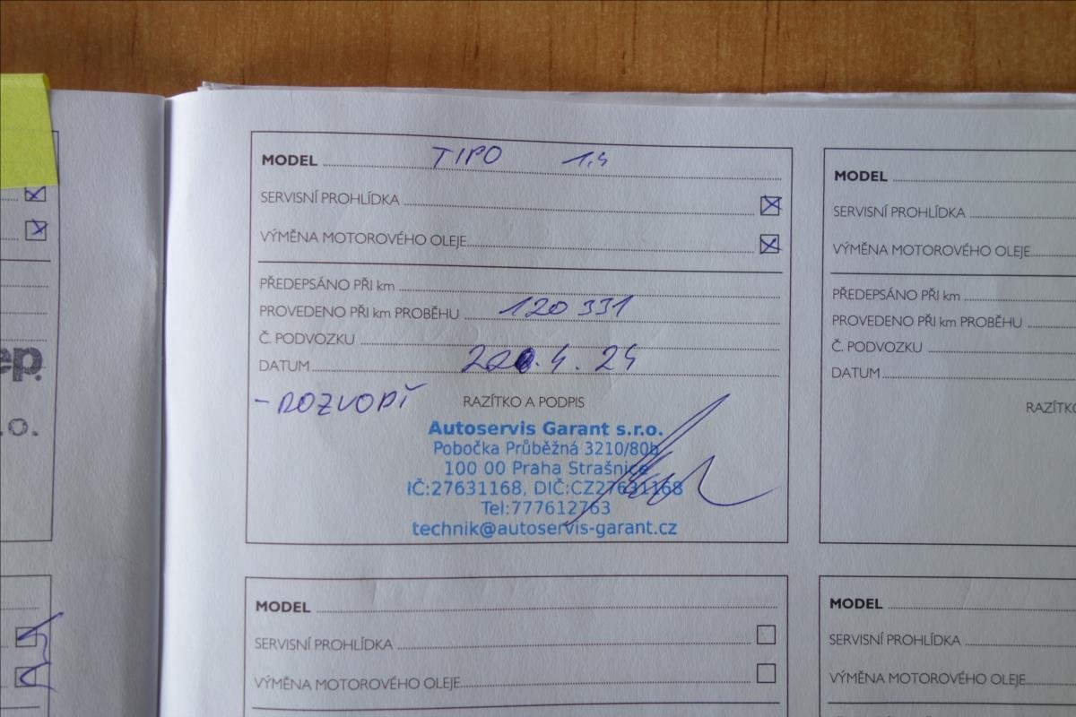 - Servisní knížka