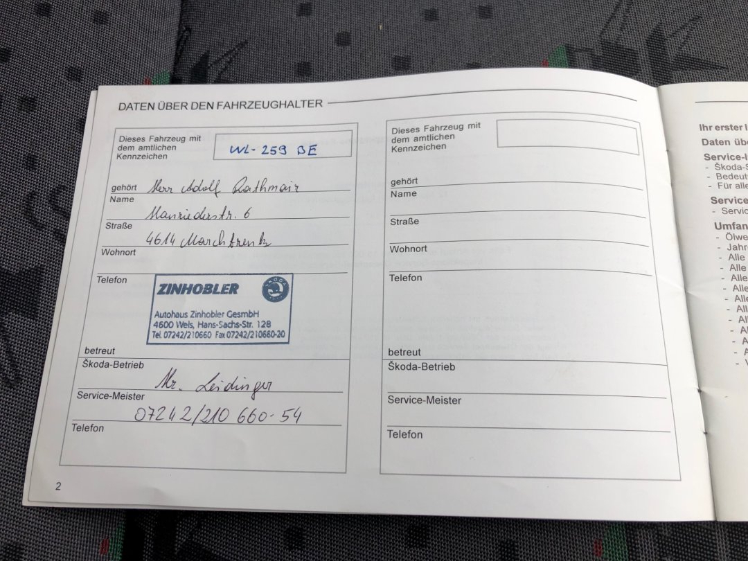 - Servisní knížka