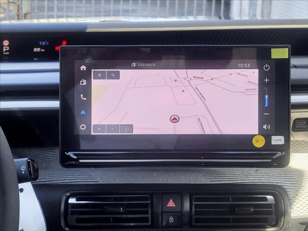 Předváděcí vůz; Příplatková výbava v ceně vozu: metalíza; Paket Zima; nebíječka; Přídavná denní světla s LED optikou; Hlavové airbagy pro první a druhou řadu sedadel; Bezpečnostní pásy vpředu s pyrotechnickým předpínačem a omezovačem tahu; 3x bezpečnostní tříbodové pásy vzadu; boční sedadla s pyrotechnickým předpínačem a omezovačem tahu; Akustická a vizuální signalizace nezapnutí a rozepnutí bezpečnostního pásu řidiče a spolujezdce; Akustická a vizuální signalizace nezapnutí a rozepnutí bezpečnostního na zadních sedadlech; 2x výškově nastavitelné opěrky hlavy vpředu; 3x opěrky hlavy vzadu; 2x bezpečnostní úchyty ISOFIX pro upevnění dětské sedačky na krajních sedadlech druhé řady; Automatické zamykání dveří a zavazadlového prostoru za jízdy (automatická deaktivace v případě dopravní nehody); Pomoc při rozjezdu ve svahu (Hill Start Assist); Coffee Brake Alert (zobrazí upozornění na displeji po 2 hodinách nepřerušené jízdy); AFIL - Varování před neúmyslným opuštěním jízdního pruhu; Systém rozpoznávání dopravních značek omezujících rychlost; EBD (rozdělovač brzdného účinku) + EBA (podpora brždění v krizové situaci) + samočinná aktivace výstražných světlometů při prudkém brzdění; ESP + ASR (elektronický stabilizační a protiskluzový systém); Zadní světla s efektem 3D; Osvětlení interiéru a zavazadlového prostoru; Sklopné opěradlo lavice ve druhé řadě dělené v poměru 2/3 - 1/3; Výškově nastavitelné sedadlo řidiče; Kryt zavazadlového prostoru; Zásuvka 12V mezi předními sedadly; Odkládací a úložné prostory v předních dveřích a centrálním panelu palubní desky; Sada pro bezdemontážní opravu defektu pneumatiky; Osvětlení interiéru LED; CITROËN Connect Rádio AM/FM (6x repro) - Dotykový 7' displej audio zásuvka typu jack; Hands free Bluetooth®; Mirror Screen; Hliníkové disky kol 'ATACAMITE' - Diamantée; pneumatiky 205/50 R17; Spotřeba elektrické energie WLTP: 166 Wh/km; Dojezd WLTP: 323 km; Výkon elektrického motoru: 113k / 83kW; Točivý moment: 120Nm; Max. rychlost: 132 km/h; Délka vozu: 4015 mm; Šířka vozu: 1813 mm; Výška vozu: 1567 mm; Provozní hmotnost: 1491 kg; Užitečná hmotnost: 419 kg; Objem zavazadlového prostoru (za 2. řadou sedadel): 310 litrů; Záruka na trakční baterii je 8 let / 160 000 km při garanci zachování 70 % kapacity baterie.; Palubní jednofázová nabíječka (OBC) 7.4 kW; Režim jízdy ECO - rekuperační brždění; Kontrola stavu nabití baterie na dálku (pomocí aplikace pro chytrý telefon); Zásuvka CCS - Type2: pro standardní dobíjení střídavým proudem (AC); pro rychlé dobíjení stejnosměrným proudem (DC) (max. 100 kW - nabití na 80% za cca 26 min); Baterie: Lithium Ferro Phosphate 400 V