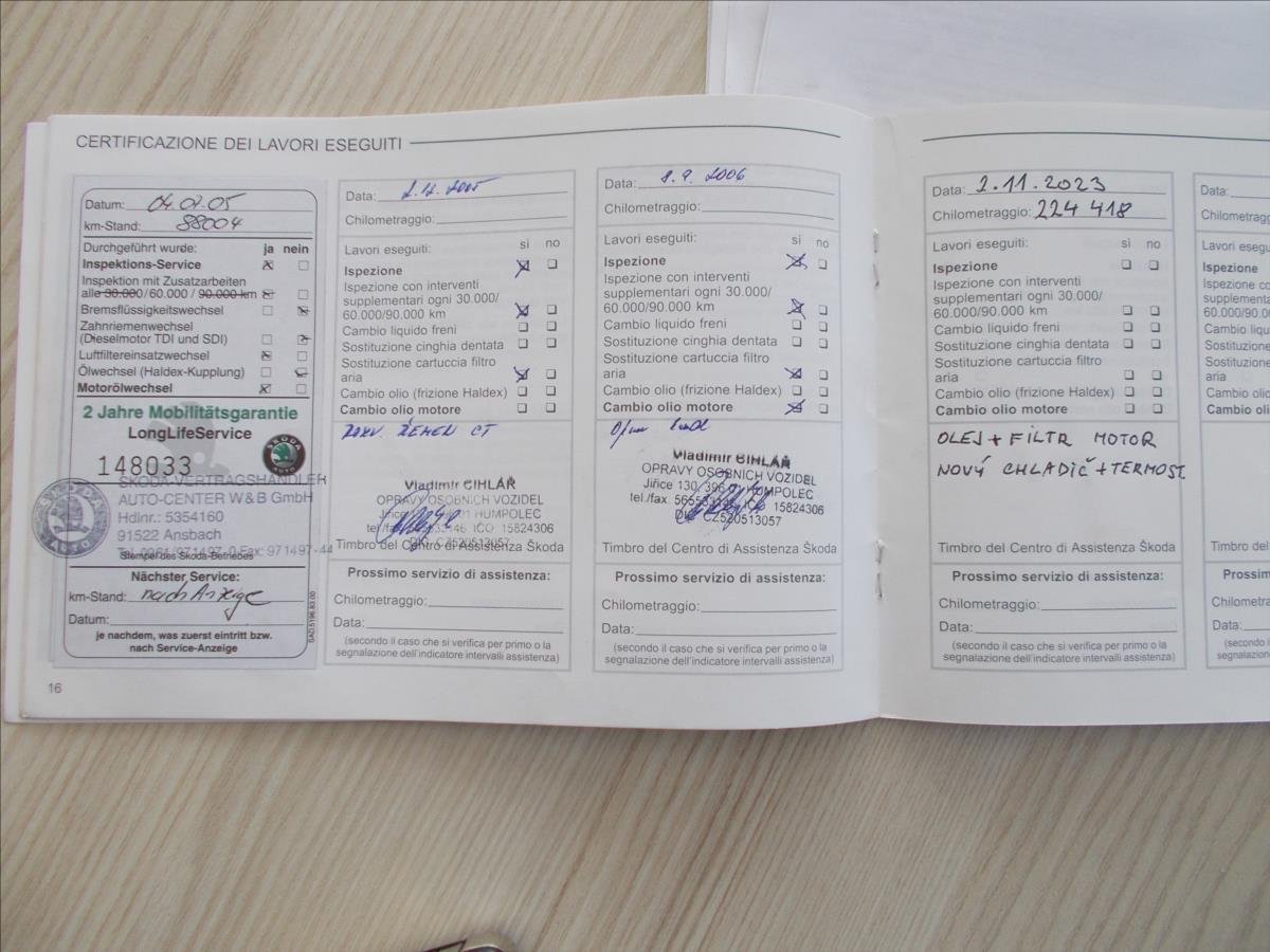 - Servisní knížka