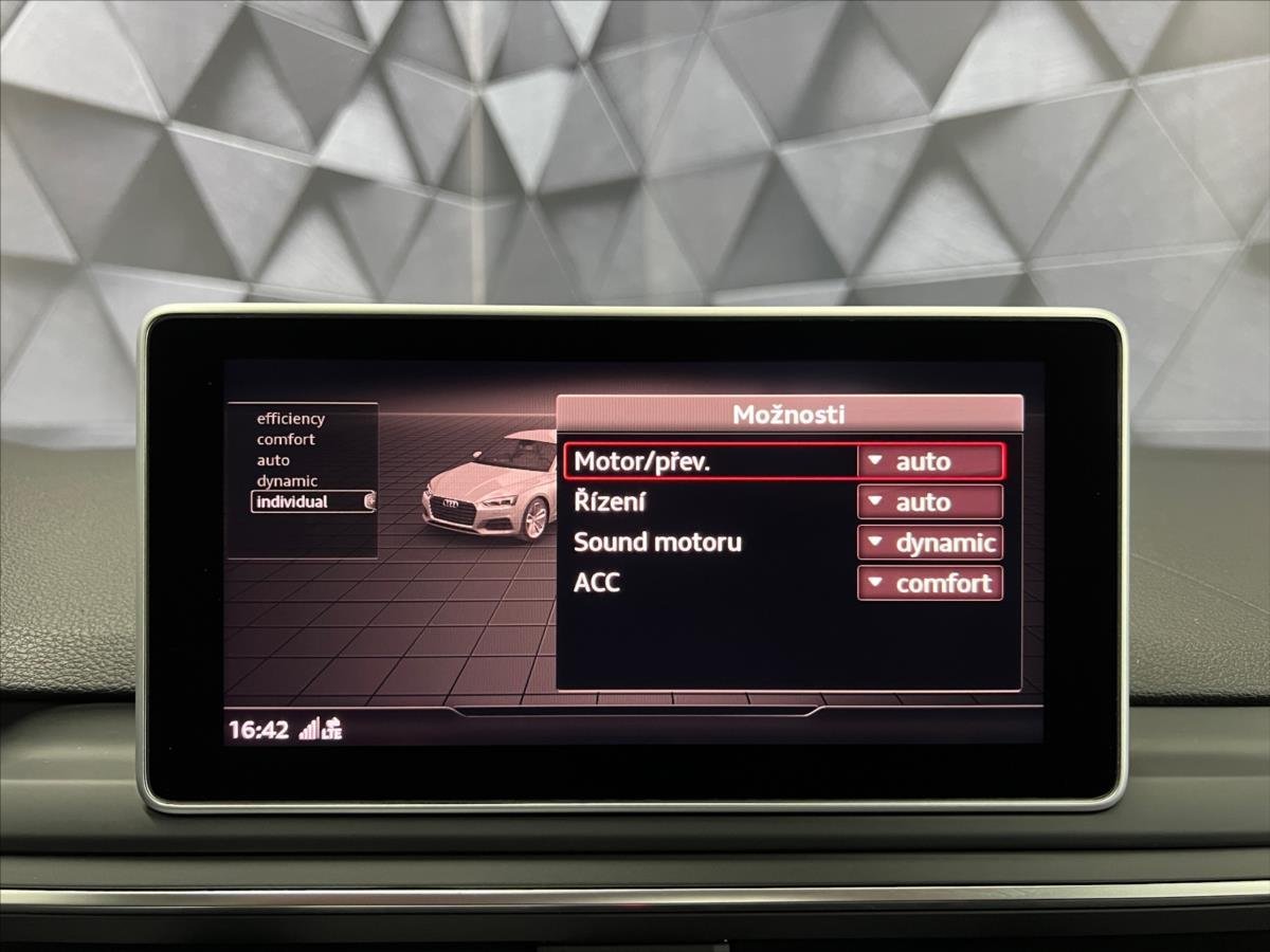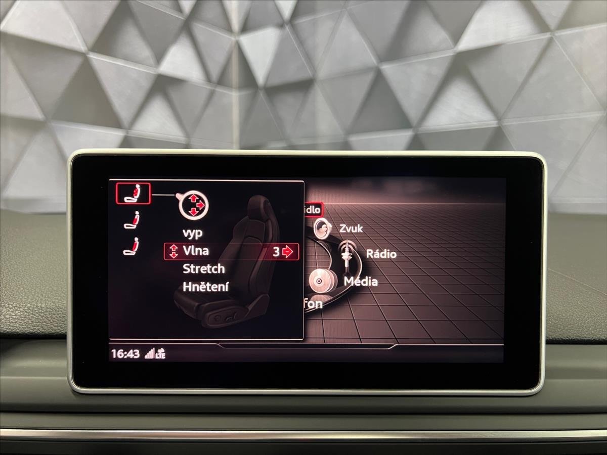 První majitel; !!!MOŽNOST PRODLOUŽENÉ ZÁRUKY AŽ DO 05/2029!!! ADAPTIVNÍ FULL LED SVĚTLOMETY S LED DENNÍM SVÍCENÍM; 8MI STUPŇOVÁ AUTOMATICKÁ PŘEVODOVKA S MOŽNOSTÍ MANUÁLNÍHO ŘAZENÍ POD VOLANTEM; BEZKLÍČKOVÉ ODEMYKÁNÍ; ZAMYKÁNÍ A STARTOVÁNÍ ''KEYLESS''; SATELITNÍ NAVIGAČNÍ SYSTÉM; SOUNDSYSTÉM BANG&OLUFSEN; AUTOMATICKÁ 3 ZÓNOVÁ KLIMATIZACE; KOŽENÁ EL. OVLÁDANÁ; VYHŘÍVANÁ SPORTOVNÍ SEDADLA S FUNKCÍ MASÁŽE; ZADNÍ PARKOVACÍ KAMERA; PŘEDNÍ A ZADNÍ PARKOVACÍ SENZORY; ASISTENT AUTOMATICKÉHO PARKOVÁNÍ; ASISTENT HLÍDÁNÍ JÍZDNÍCH PRUHŮ; ASISTENT DOPORUČENÉ PŘESTÁVKY; AUDI VIRTUAL COCKPIT; BLUETOOTH; ISOFIX; ADAPTIVNÍ TEMPOMAT; AUDI PRE SENSE; AUT. AKTIVACE DÁLKOVÝCH SVĚTEL; EL. OVLÁDÁNÍ OTEVÍRÁNÍ A ZAVÍRÁNÍ VÍKA ZAVAZADLOVÉHO PROSTORU; EL. OVLÁDANÉ STŘEŠNÍ PANORAMATICKÉ OKNO; MOŽNOST VOLBY JÍZDNÍCH REŽIMŮ; ZATMAVENÁ ZADNÍ SKLA; ALU. 20'' KOLA