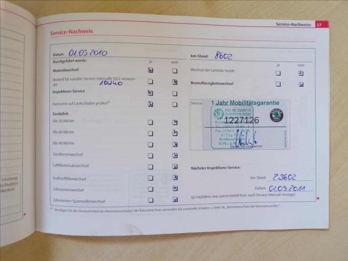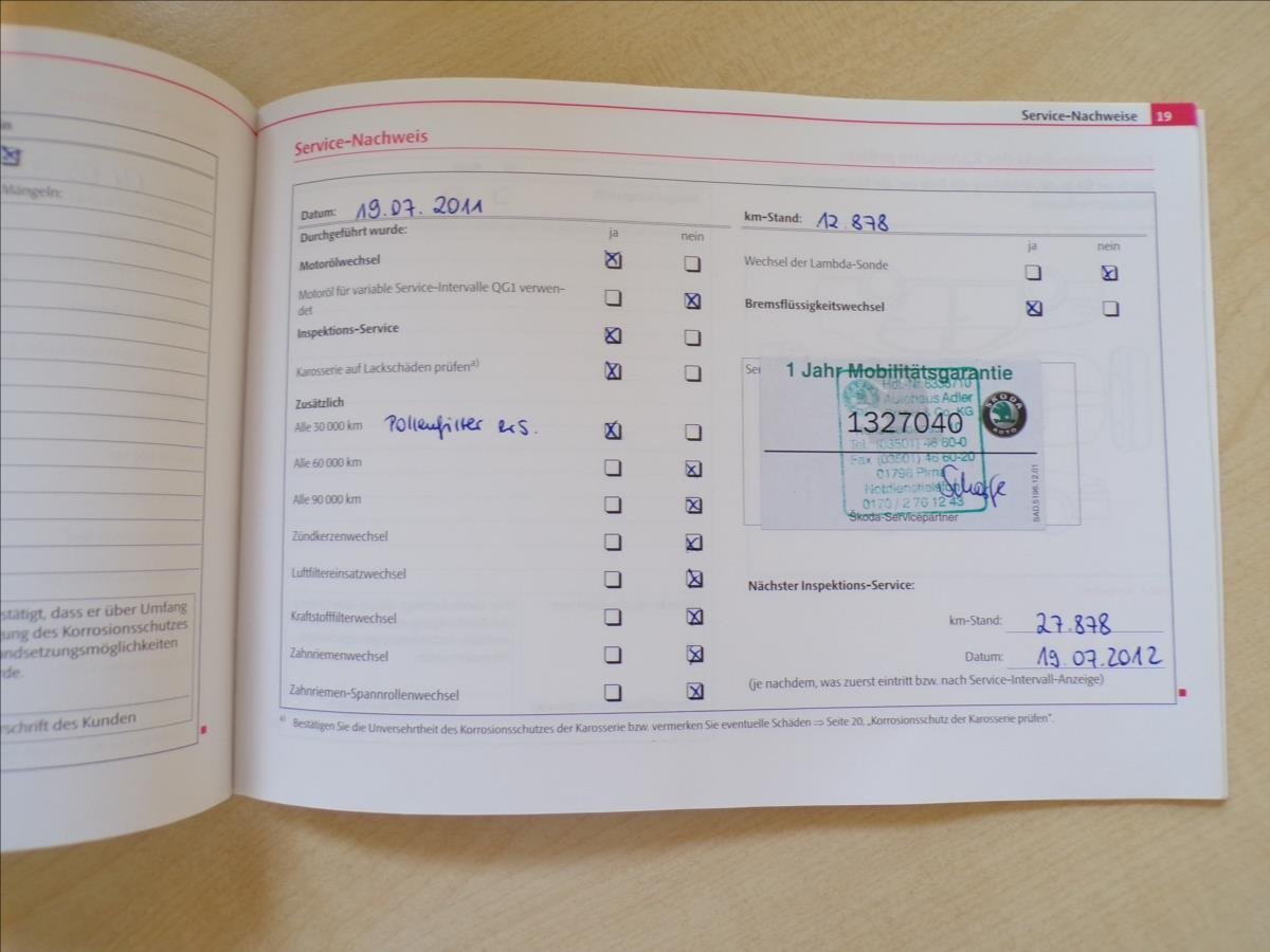 - Servisní knížka