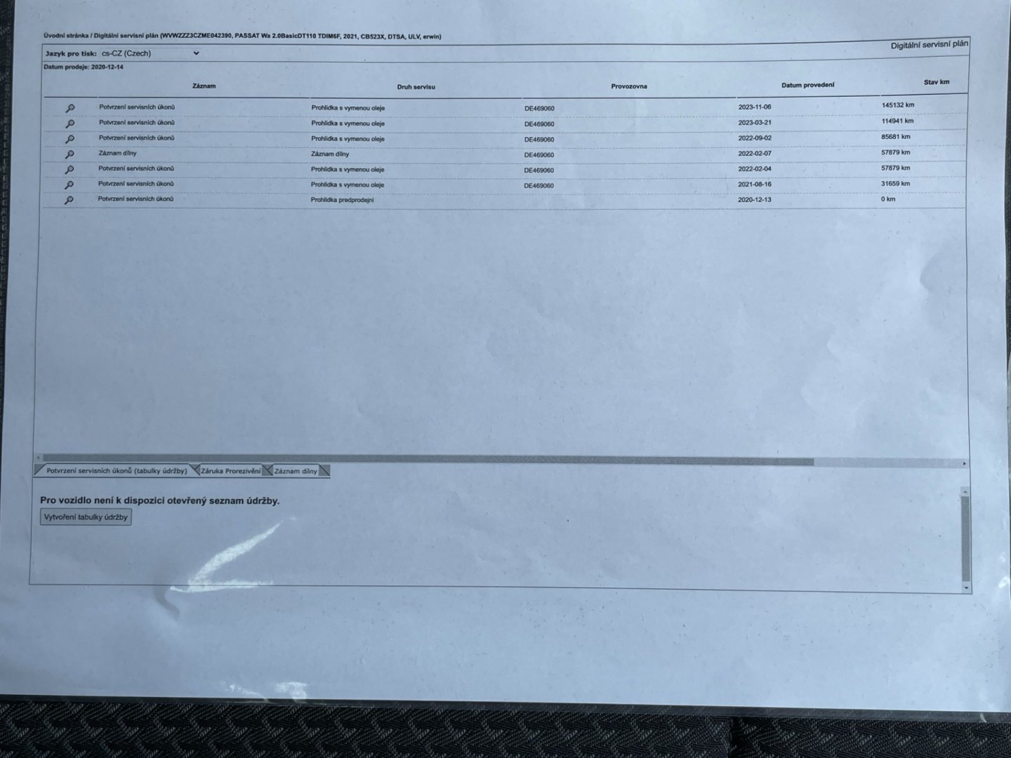 - Servisní knížka