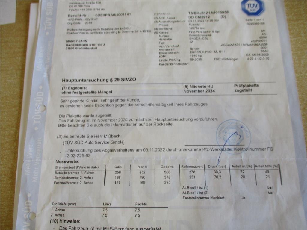 • Servisní knížka