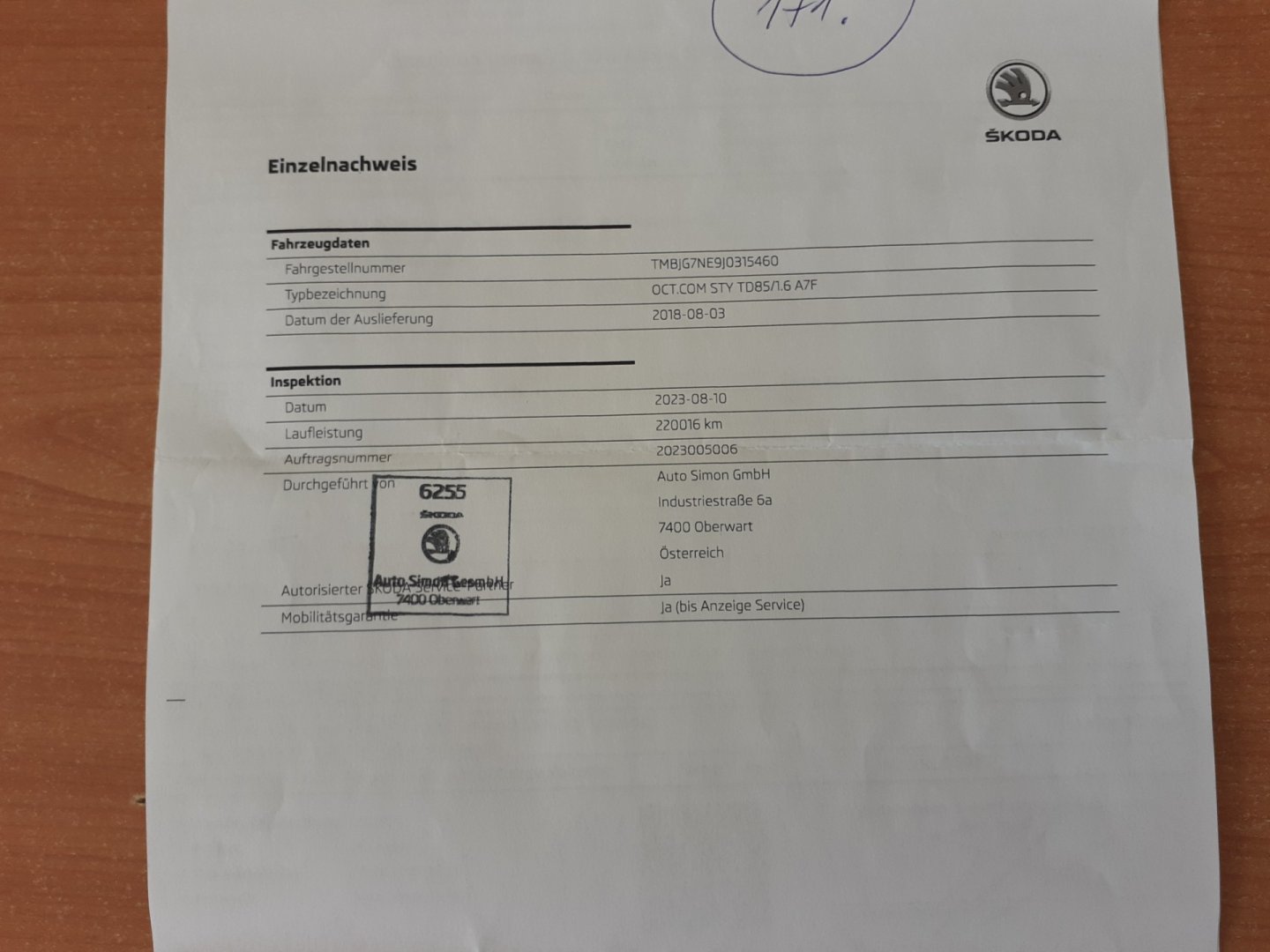1. Majitel, Servisní knížka