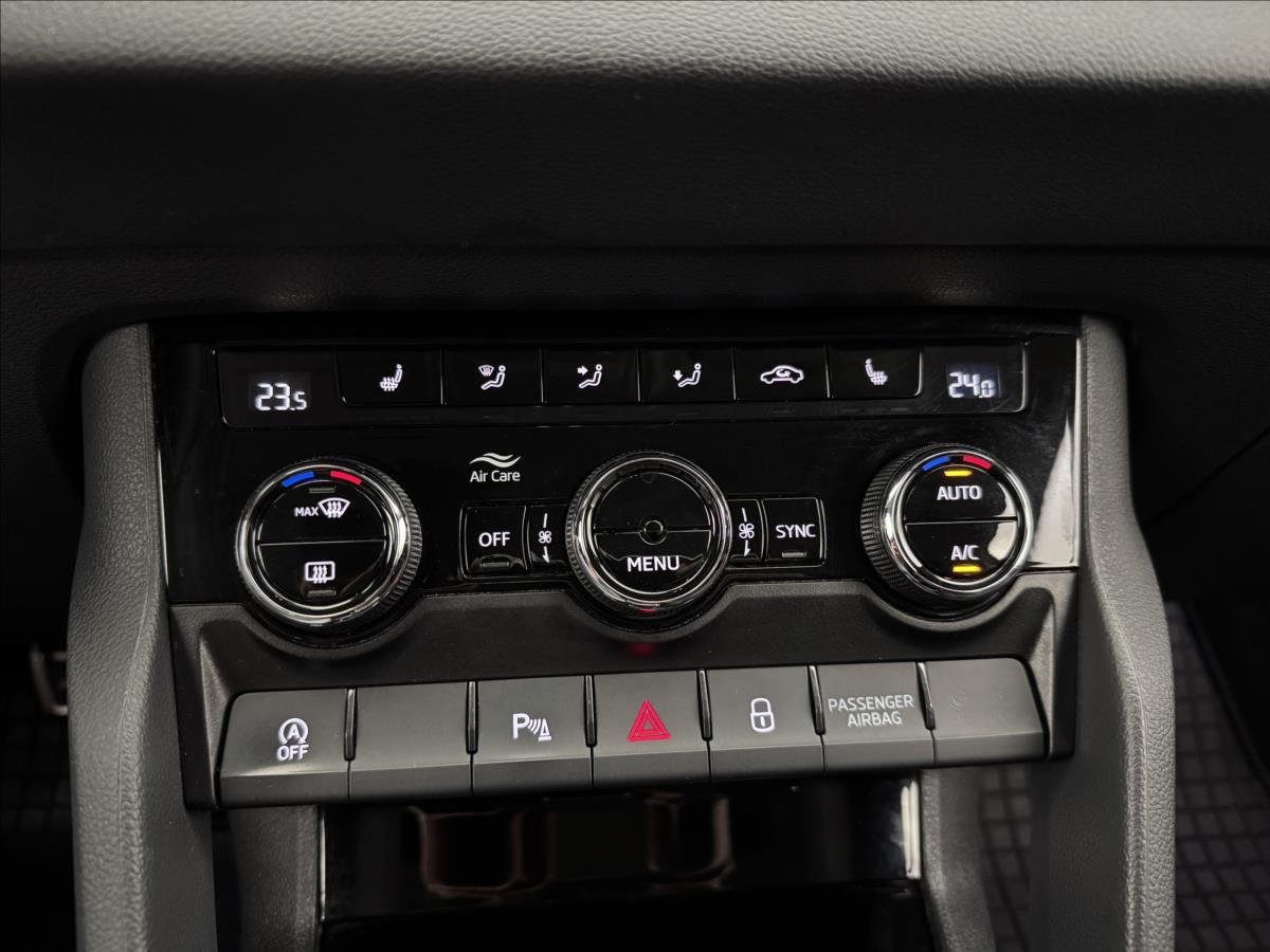 | Vnitřní výbava a komfort | Ambientní LED osvětlení interiéru, Klimatizace aut. , Deaktivace airbagu spolujezdce, Dřevěné obložení, Klimatizace dvouzónová, El. sklopná zrcátka, El. parkovací brzda, Klimatizovaná přihrádka, Multifunkční volant, Nastavitelný volant, Posilovač řízení, Senzor opotřebení brzd. destiček, Senzor stěračů, Senzor tlaku v pneumatikách, Venkovní teploměr, Vyhřívaná zrcátka |