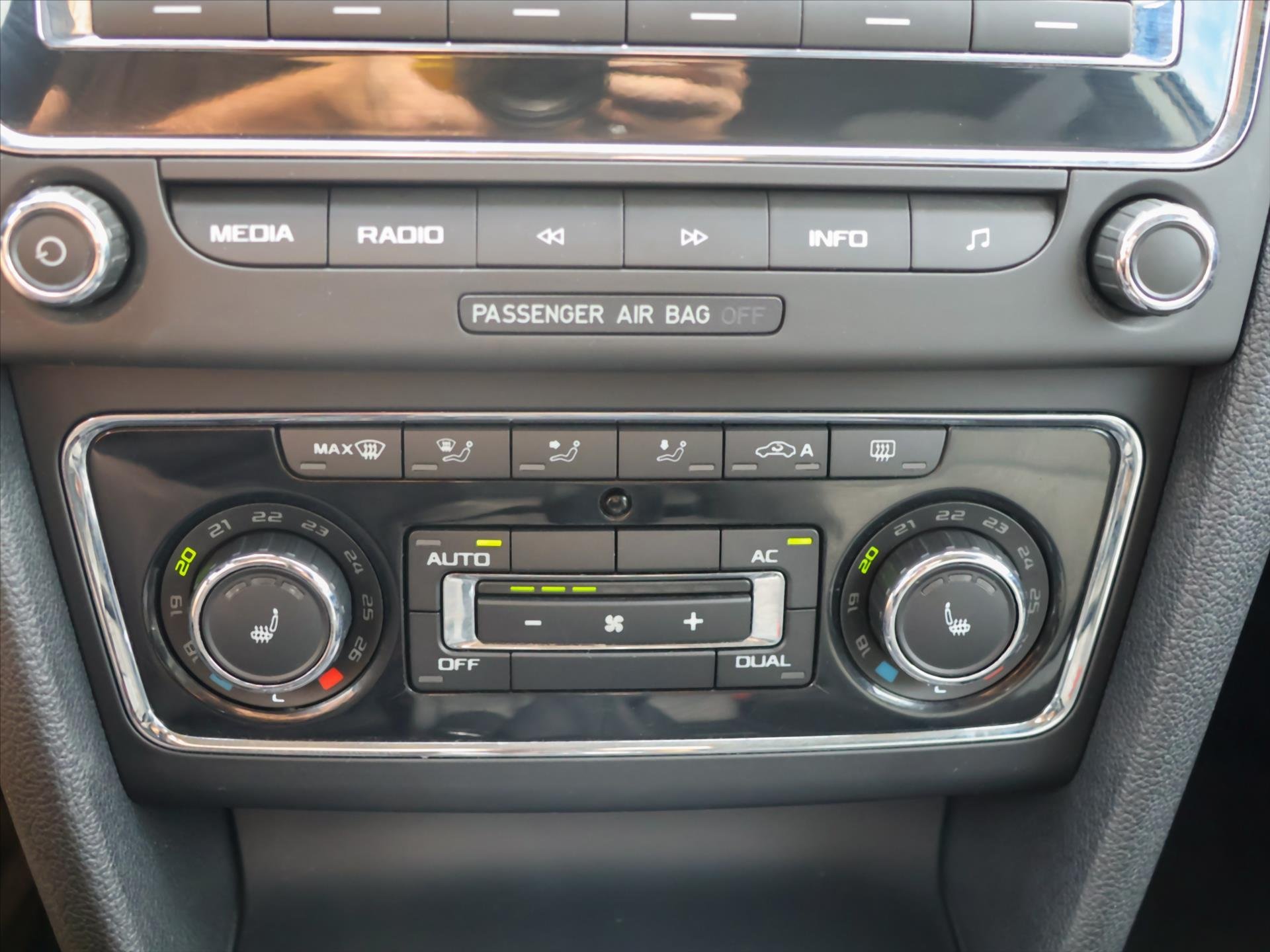 | Vnitřní výbava a komfort | Klimatizace aut. , Deaktivace airbagu spolujezdce, Klimatizace dvouzónová, El. sklopná zrcátka, Klimatizovaná přihrádka, Multifunkční volant, Nastavitelný volant, Posilovač řízení, Senzor stěračů, Senzor tlaku v pneumatikách, Venkovní teploměr, Vyhřívaná zrcátka |