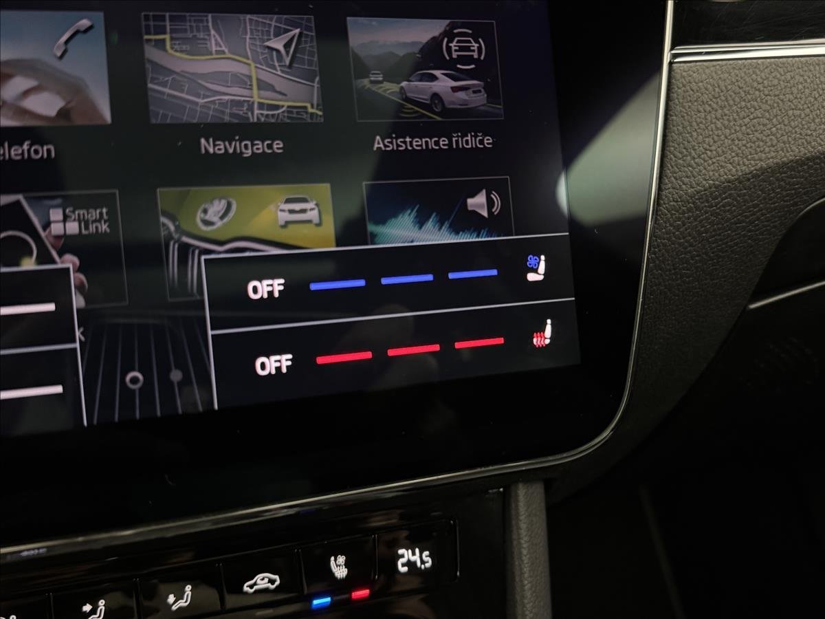 První majitel; ** Nová autobaterie * Laurin & Klement * DSG * Nezávislé topení na d.o. * DCC - Adaptivní tlumiče * Virtuální kokpit * Odvětrávaná sedadla * 360° kamera * Panoramatická střecha * Keyless * Vyhřívaný multifunkční volant s řazením pod volantem; adaptivní tempomat; aut. 2-zón. klimatizace; apple carplay/android auto; ambientní osv. interiéru; bezd. nabíječka tel.; isofix; brzdový as.; as. hlídání jízdního pruhu a mrtvého úhlu; as. únavy řidiče; kožená sedadla; sedadlo řidiče s pamětí a masáží; vyhřívaná sedadla p+z; vyhřívané přední sklo; parkovací as.; parkovací senzory p+z; ALU kola Škoda R18; el. tažné zařízení ** Pravidelný servis. K vozidlu možno pořídit prodlouženou záruku až na 3 roky bez omezení počtu najetých kilometrů. možnost výhodného úvěrového financování. podrobné informace vám rádi poskytneme na tel.č. 728 666 111; 728 666 333.