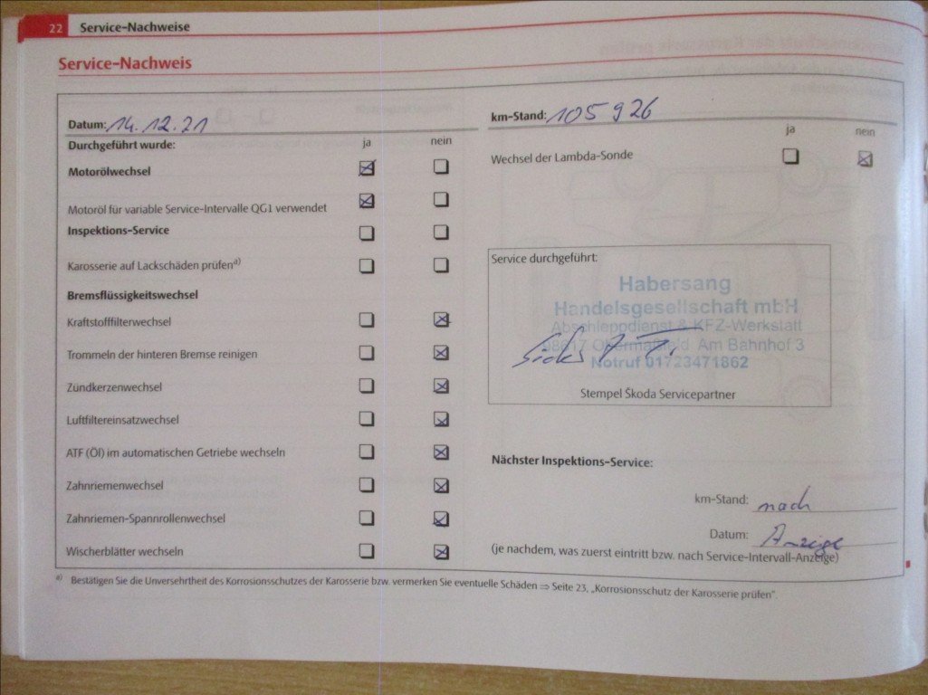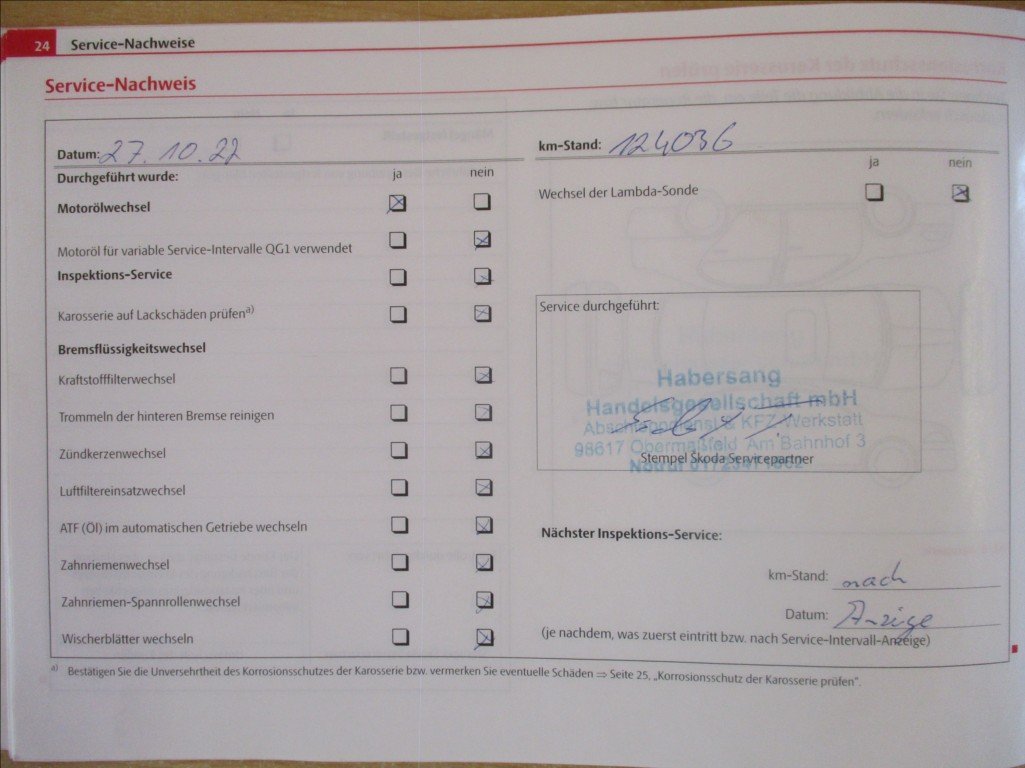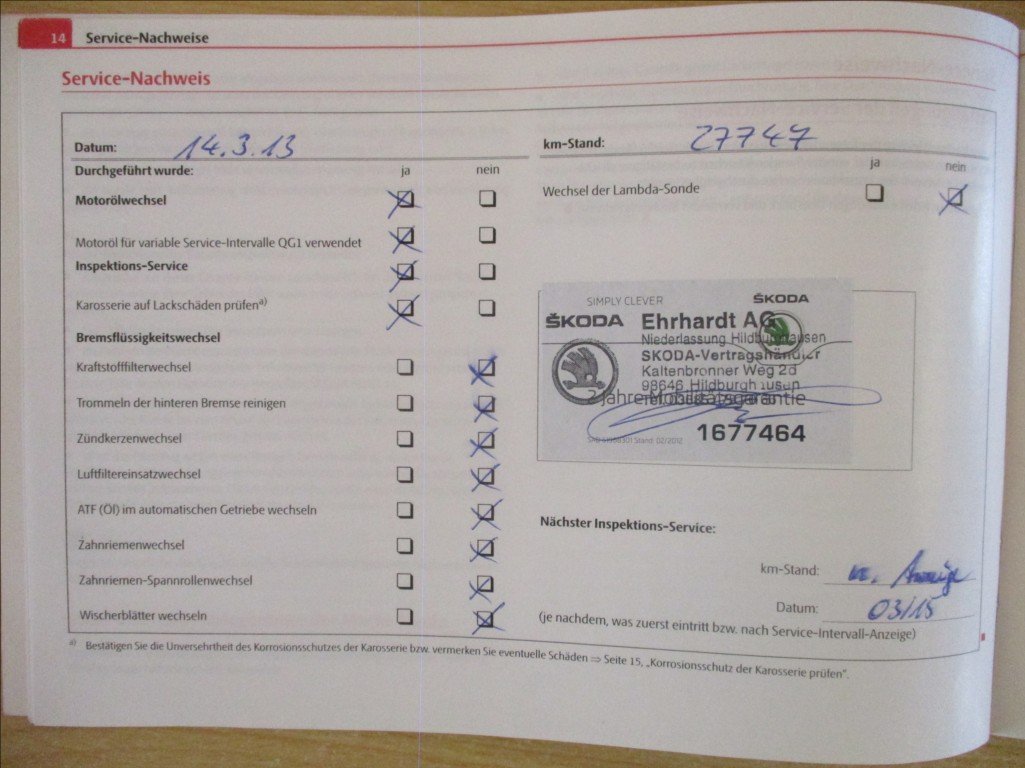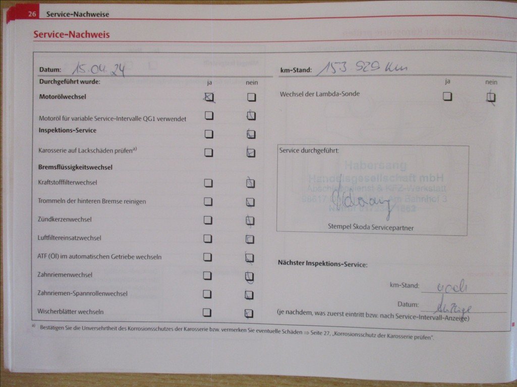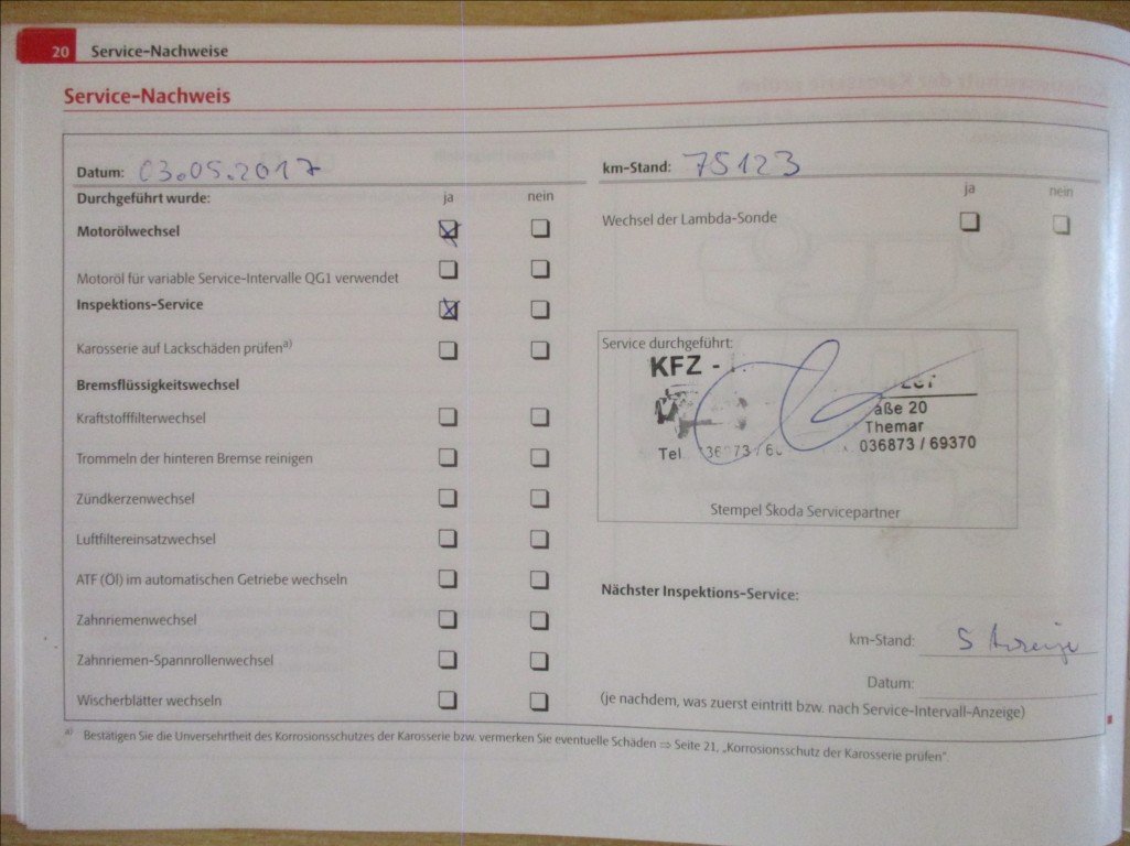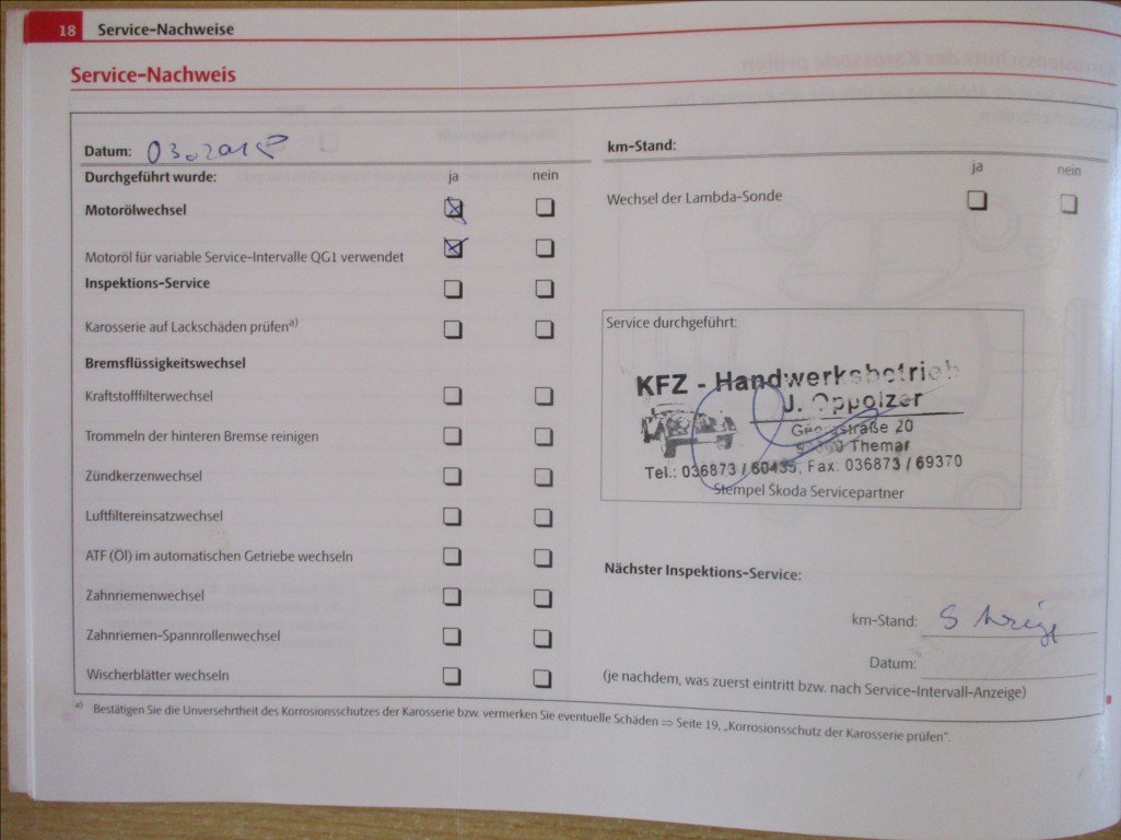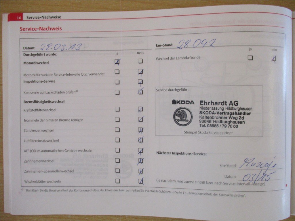 - Servisní knížka