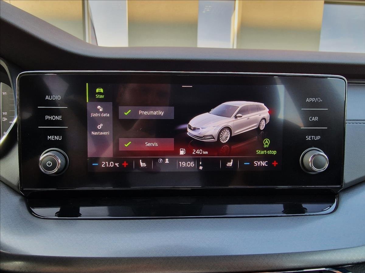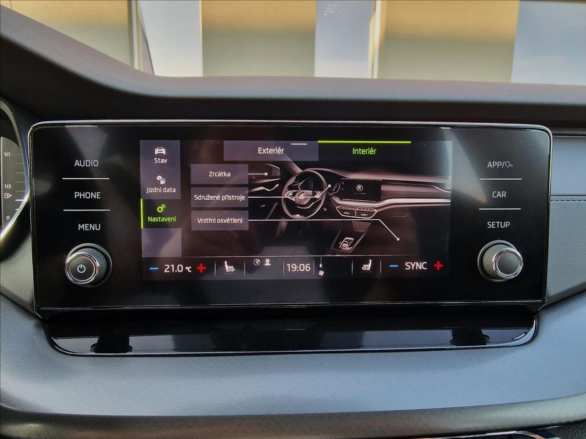 | Vnitřní výbava a komfort | Bezklíčkové ovládání, Deaktivace airbagu spolujezdce, Klimatizace dvouzónová, El. sklopná zrcátka, El. parkovací brzda, Klimatizovaná přihrádka, Multifunkční volant, Nastavitelný volant, Posilovač řízení, Senzor stěračů, Venkovní teploměr, Vnitřní teploměr, Vyhřívaná zrcátka, Zadní loketní opěrka |