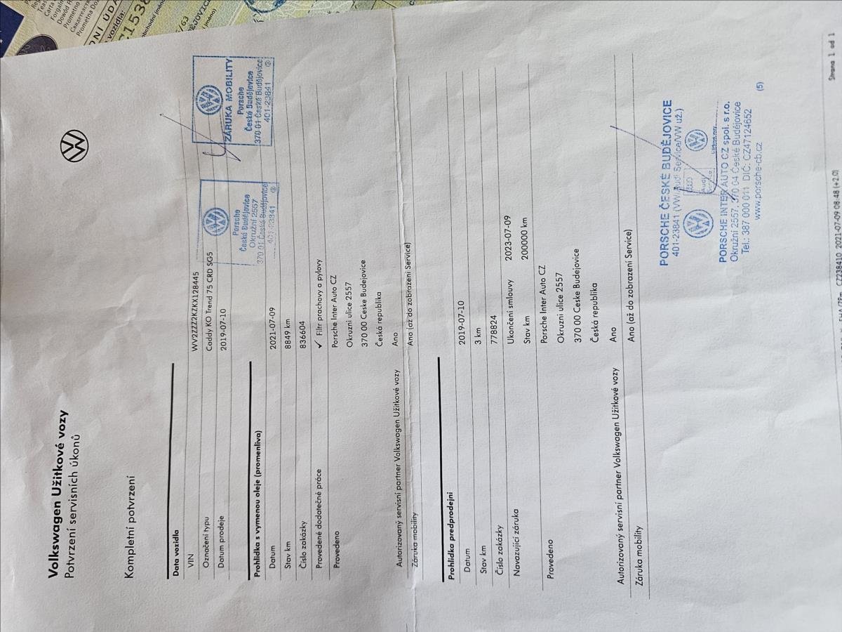 - Servisní knížka