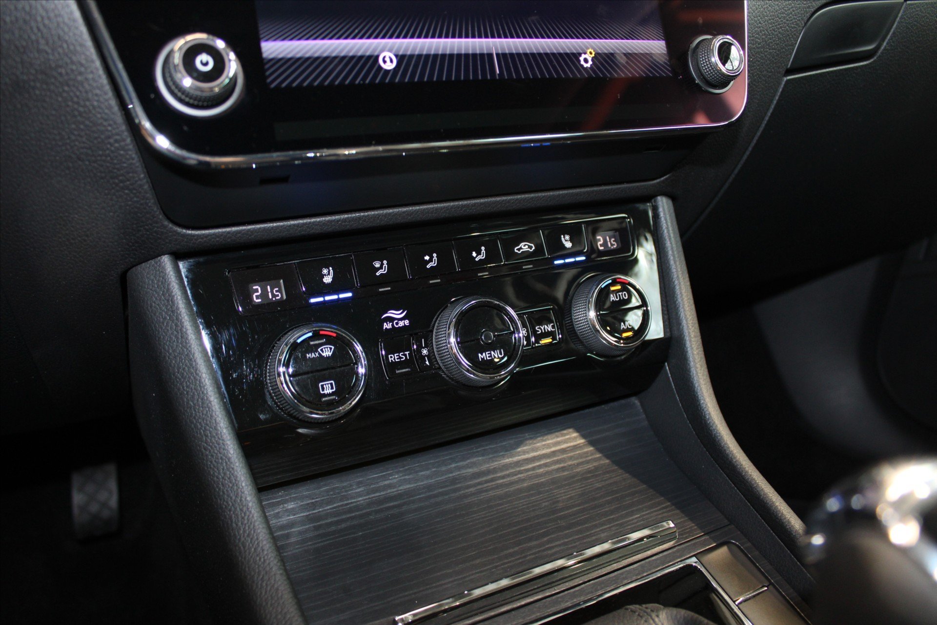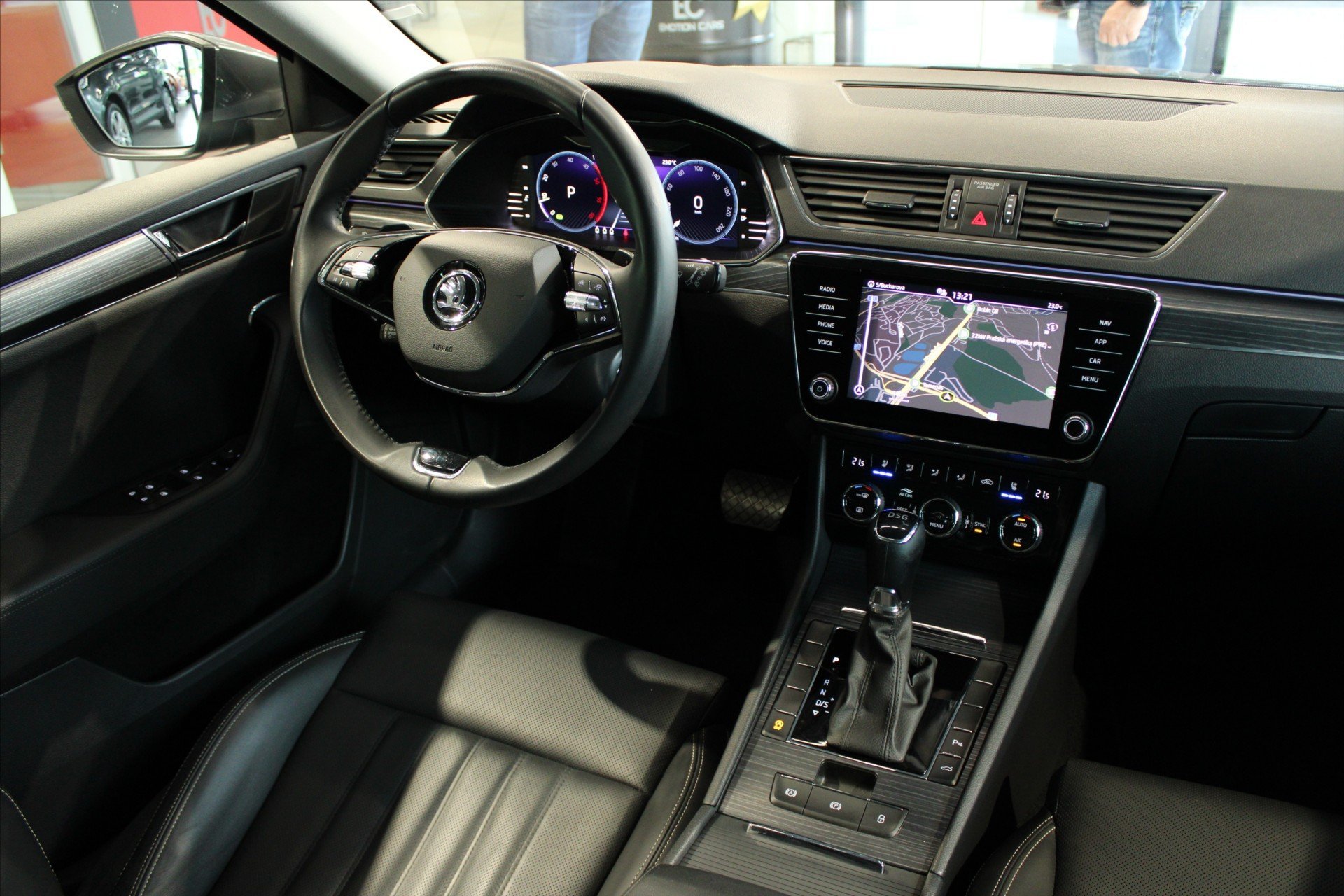 | Vnitřní výbava a komfort | Ambientní LED osvětlení interiéru, Klimatizace aut. , Bezklíčkové ovládání, Deaktivace airbagu spolujezdce, Dřevěné obložení, El. sklopná zrcátka, El. parkovací brzda, Klimatizovaná přihrádka, Kožené čalounění, Multifunkční volant, Nastavitelný volant, Posilovač řízení, Malý kožený paket, Pádla řazení na volantu, Senzor opotřebení brzd. destiček, Senzor stěračů, Senzor tlaku v pneumatikách, Klimatizace třízónová, Venkovní teploměr, Vnitřní teploměr, Vyhřívaná zrcátka, Vyhřívané trysky ostřikovačů skla, Zadní loketní opěrka |