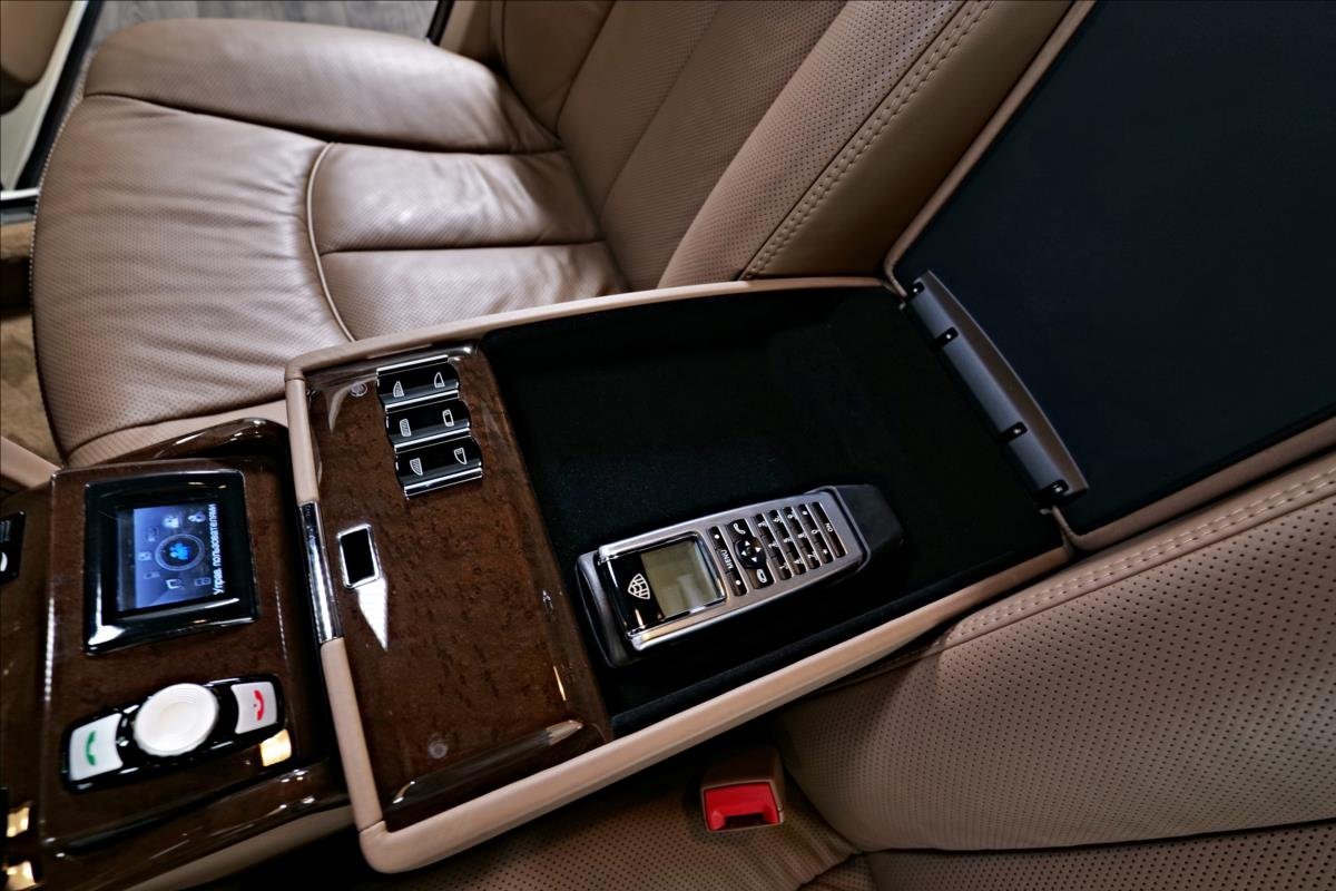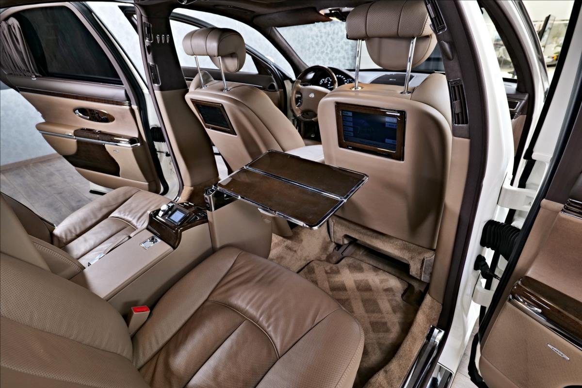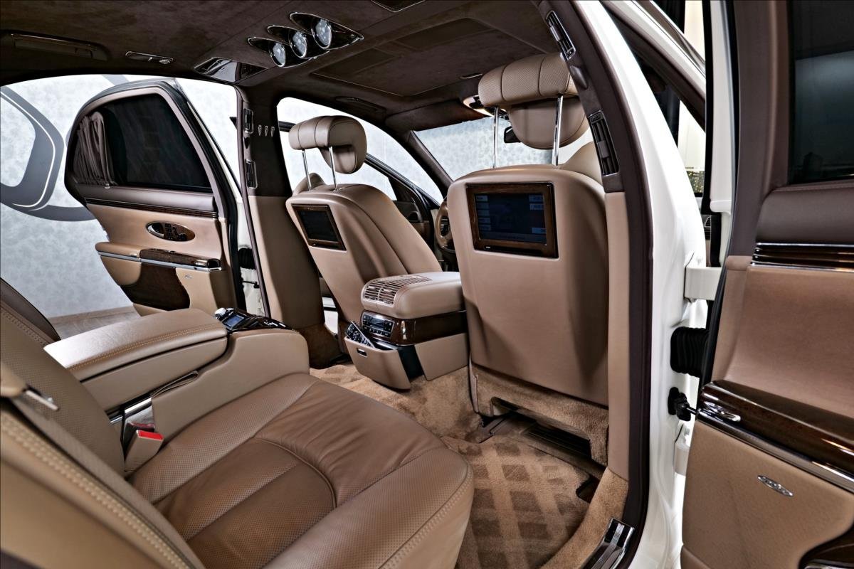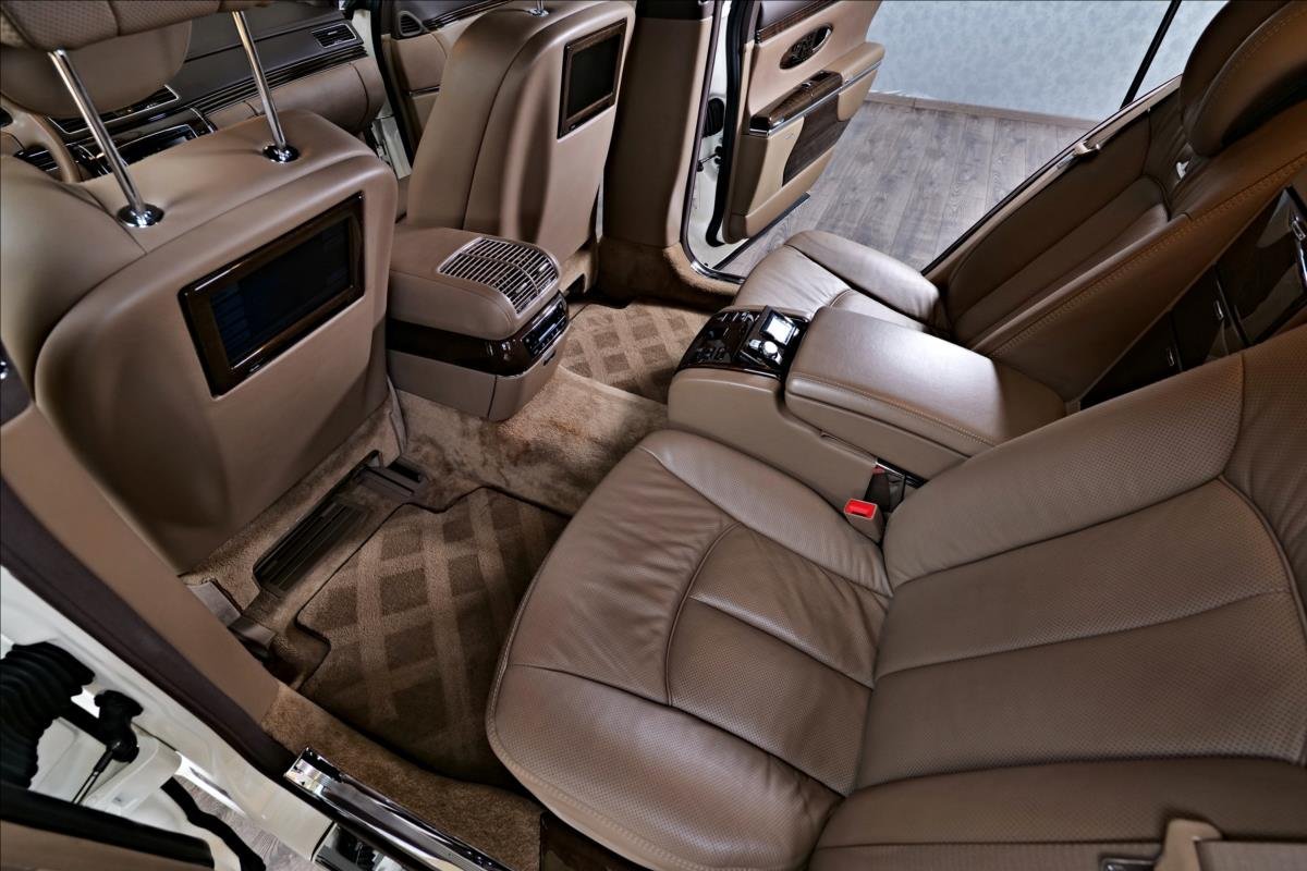 Dobrý den; máme na prodej Maybach 57 facelift. Vozidlo je lakované v bílé metalíze. Interiér je v hnědé kůži. Další výbava vozdla: 19 palcové disky Maybach; věreané vyhřívané a elektricky polohovatelné seadla s pamětí; TV na zadní sedadlech; stolečky v zádu; Bose sound system; alkantara na stropě; parkovací kamera; roletky na zadních sedadlech; DVD měnič...