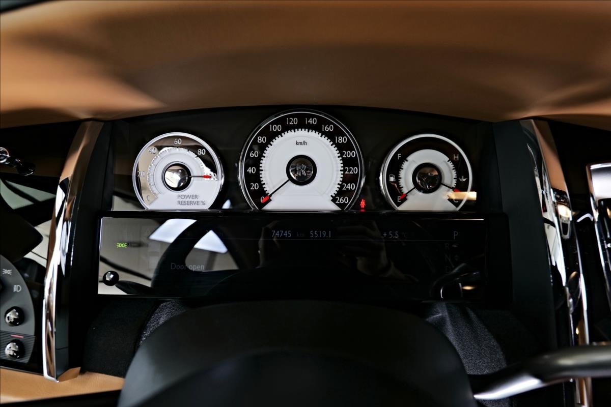 Dobrý den; máme na prodej Rolls-Royce Wraith. Vozidlo je lakované v bilokor kombinaci. Další výbava vozidla: Pohodlný přístup Couvací kamera a Top View Klimatizovaná sedadla přední Adaptivní světla pro odbočování Kilometrový tachometr Dálkové světlo asistent Varování opuštění pruhu Driving Assistant Plus Side View Camera Navigační systém profesionální Zobrazení přístrojů na čelním skle BMW Assist DAB tuner (DAB+ způsobilý)Vnitřní osvětlení Dřevěná výplň Rolls-Royce Bespoke Audio