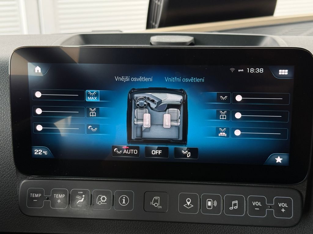 | Vnitřní výbava a komfort | Bezklíčkové ovládání, Multifunkční volant, Nezávislé topení, El. přední okna, Střešní okno, Vnitřní teploměr, Chladnička |