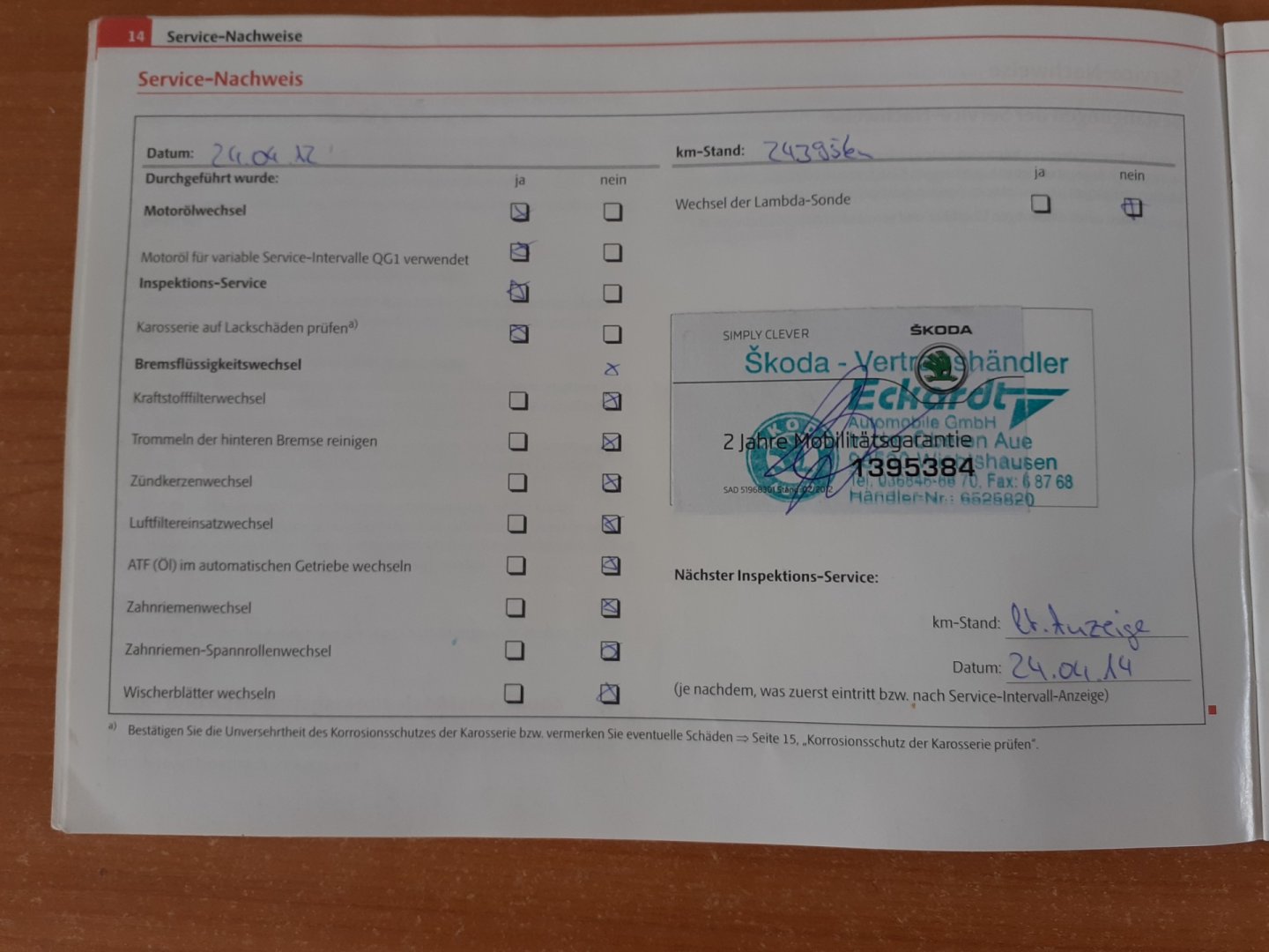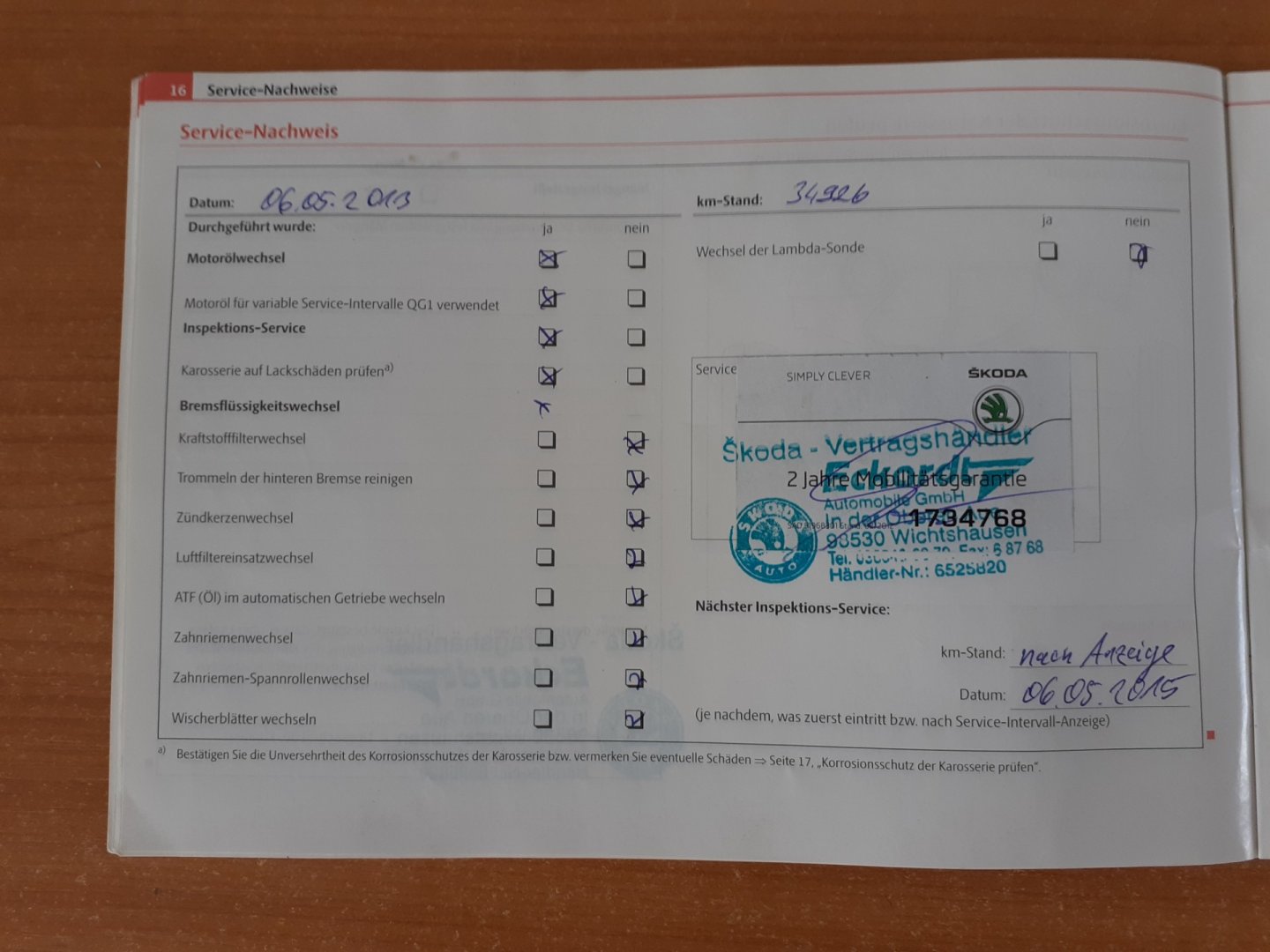 - Servisní knížka