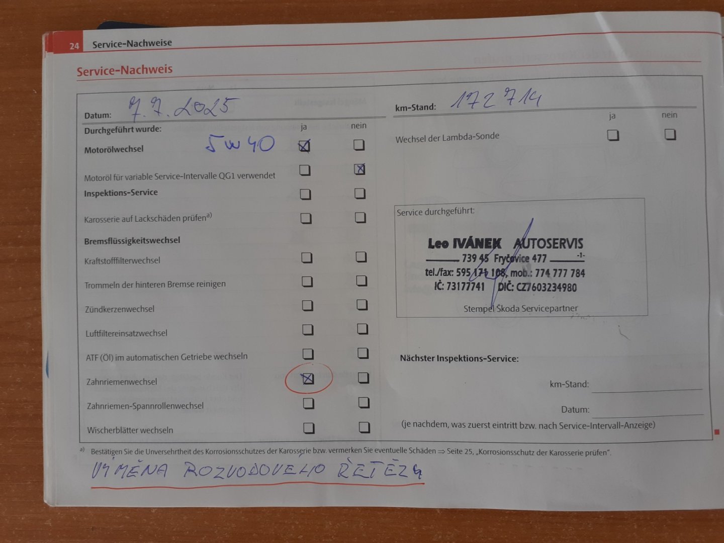 Servisní knížka ,PO SERVISE -NOVÉ ROZVODY + OLEJ + FILTR !