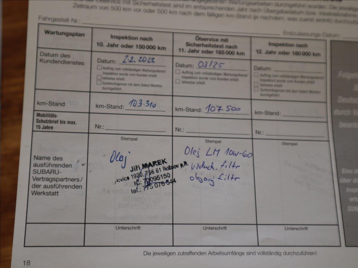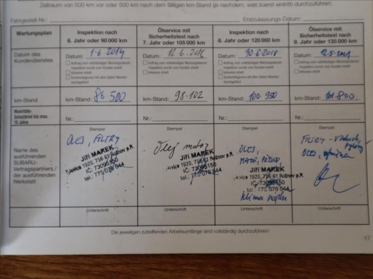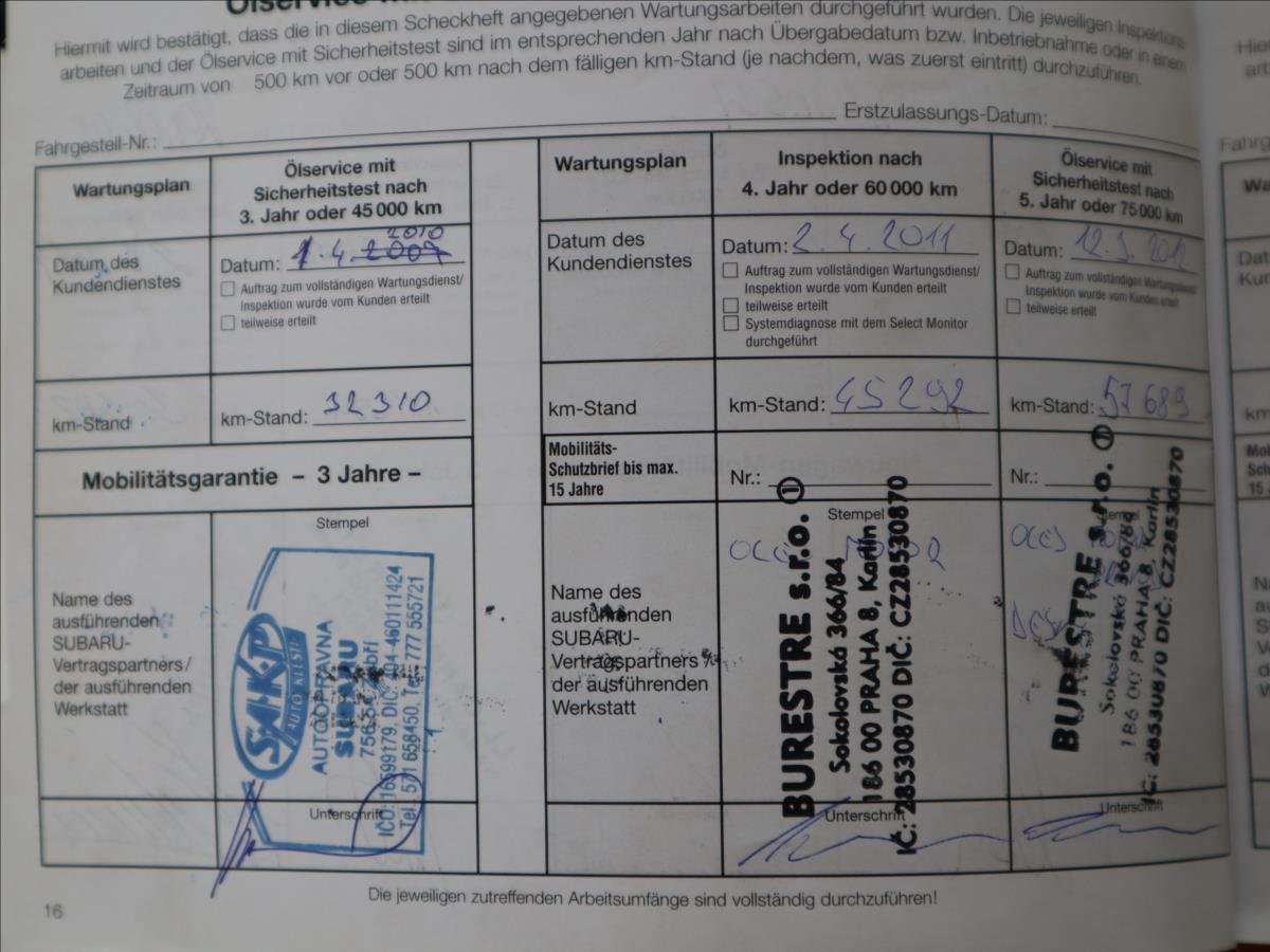 Druhý majitel; Nyní po částečné G.O. motoru (nové hlavní a ojniční ložiska; kontrola ovality; písní kroužky; olejové čerpadlo 12mm; časovací kola; rozvody; nové gufera v hlavách; srovnání a otlakování) - zajeto cca 2000km - nežere olej. Dodělané Chlazení 4. válce; Nový olej; filtry; uložení předních tlumičů; spodní čepy předních ramen; zadní ložiska; kotouče; desky; geometrie. v 97tis km nová spojková sada orig. Subaru. Kola EvoCorse pneu Michelin PilotSport 4; 2.sada kol s origo STi disky.