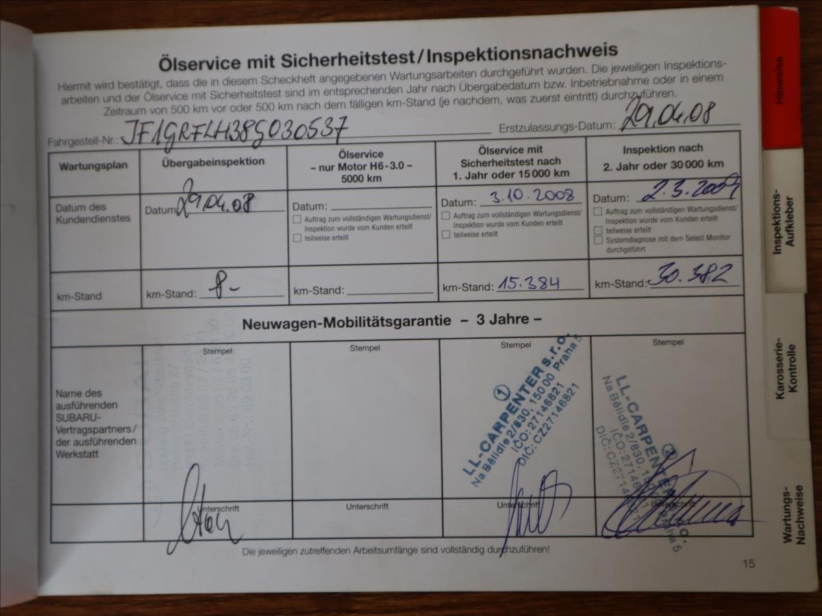 - Servisní knížka