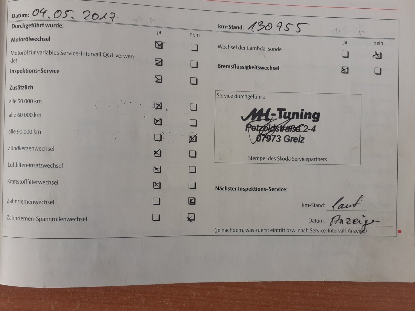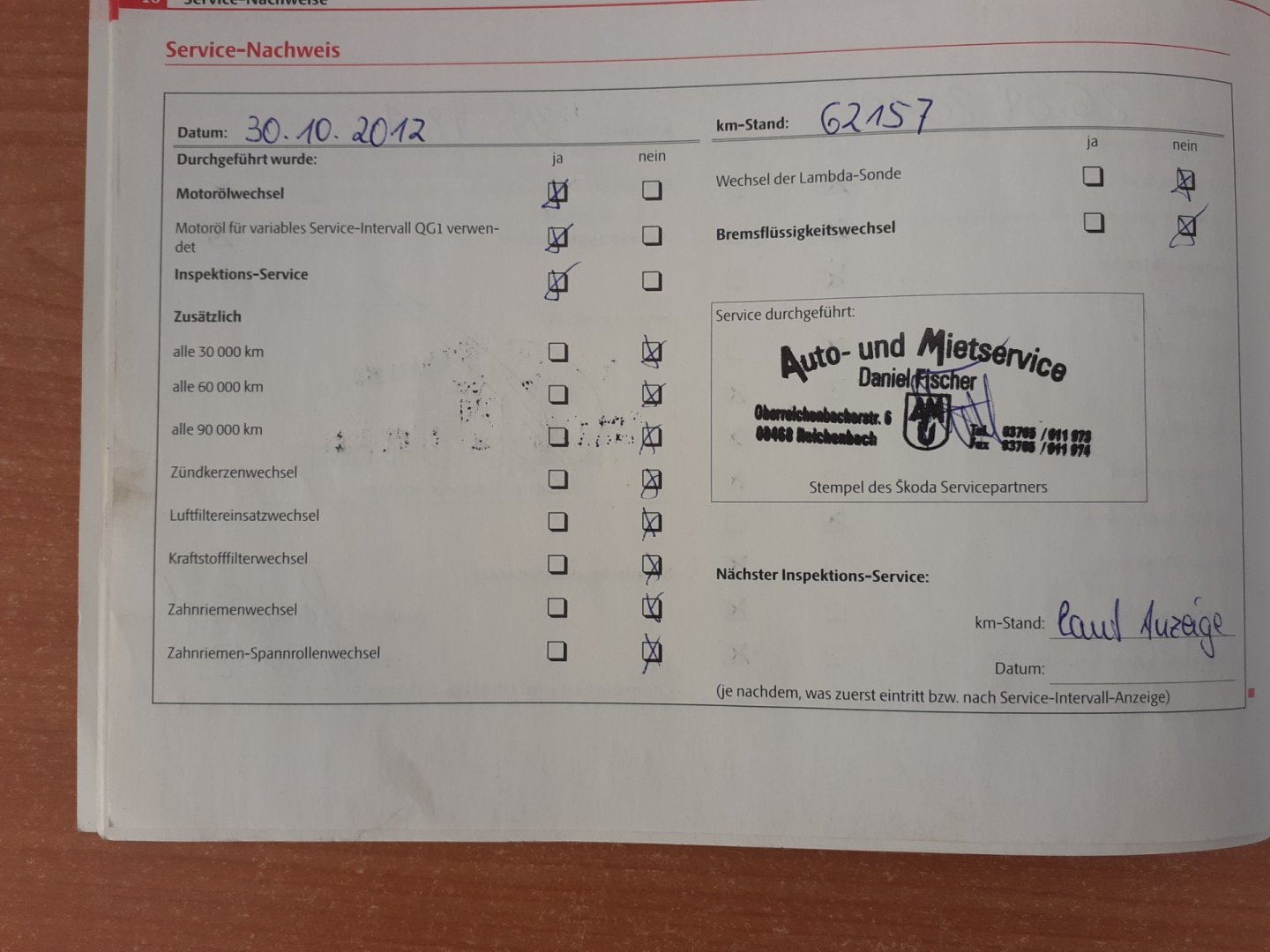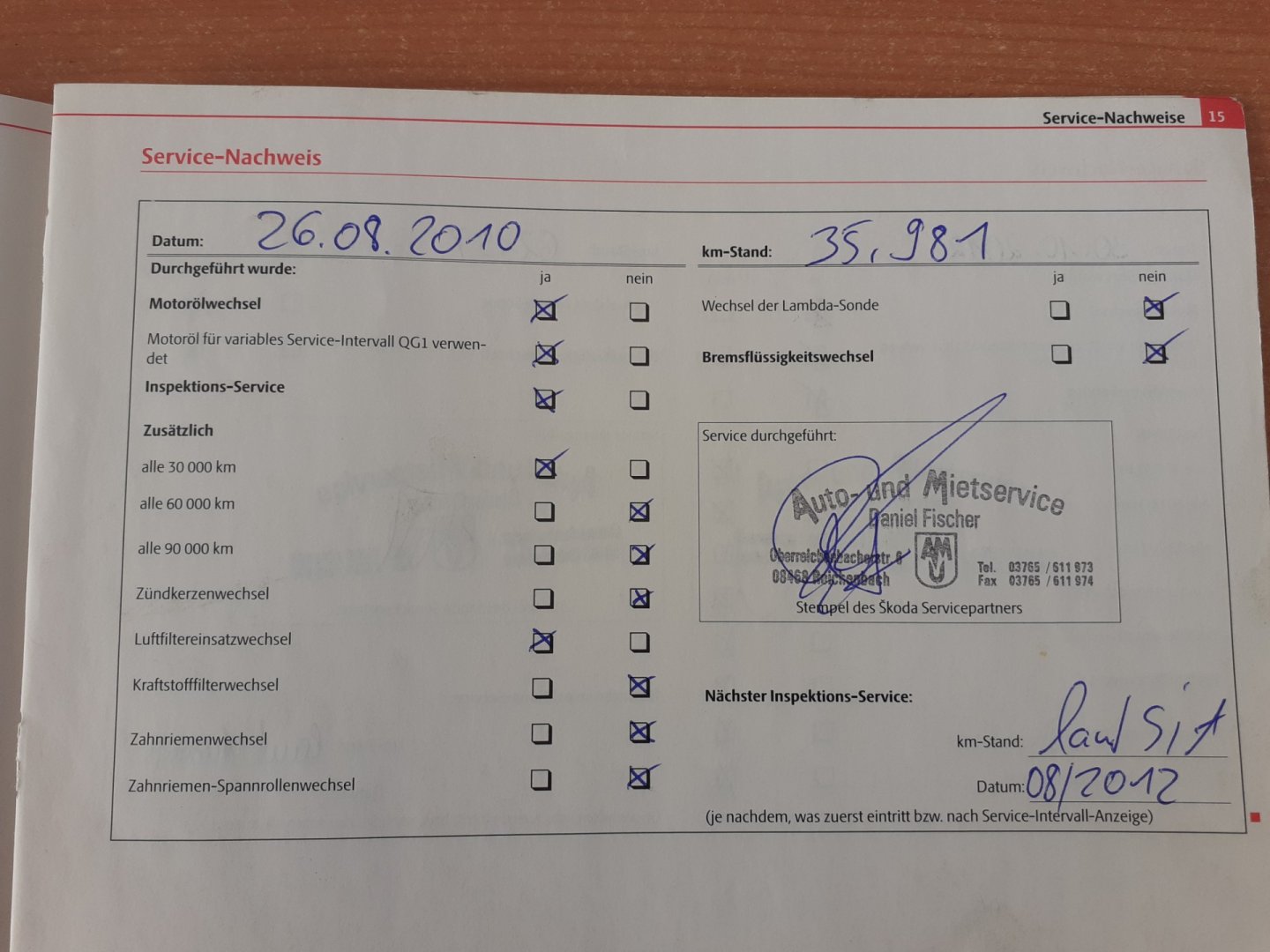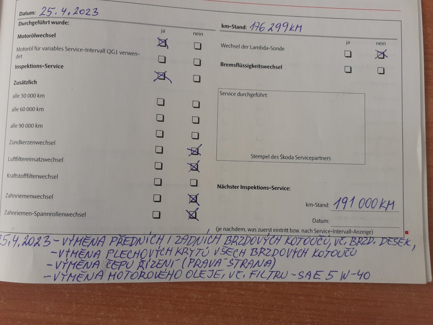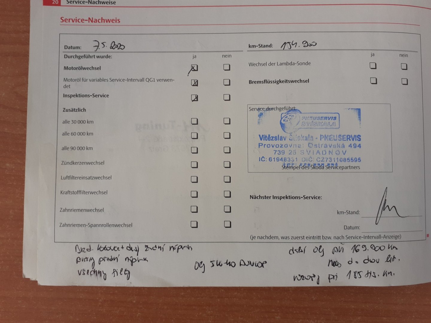 - Servisní knížka