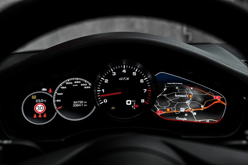 Bratislava; Porsche Panamera GTS Sport Turismo (2021): Exteriér: Tiefschwarzmetallic (metalická čierna) Interiér: Alcantara Komfort a asistenčné systémy vodiča Power Steering Plus – rýchlostne závislé posilňovače riadenia pre jednoduchšie manévrovanie pri nízkych rýchlostiach Adaptívny tempomat vrátane asistenta jazdy v kolóne – udržiava bezpečný odstup a podporuje poloautonómne riadenie v dopravných zápchach Porsche Entry & Drive – bezkľúčový vstup a štartovanie motora ParkAssist vrátane zobrazenia okolia (Surround View) – parkovacie senzory vpredu a vzadu so 360° kamerovým systémom Head-Up Display – premieta kľúčové jazdné informácie na čelné sklo Asistent zmeny jazdného pruhu (sledovanie mŕtveho uhla) – pomáha pri prechádzaní do iného jazdného pruhu detekciou vozidiel v mŕtvom uhle Interiér Vyhrievanie zadných sedadiel Štvorzónová automatická klimatizácia Ambientné osvetlenie – nastaviteľné osvetlenie interiéru pre príjemnejšiu atmosféru Úložný paket – dodatočné úložné priestory v celom interiéri Vak na lyže – integrovaný vak na lyže cez priechod medzi zadnými sedadlami Bočné airbagy vzadu – dodatočná ochrana pre cestujúcich na zadných sedadlách Audio a infotainment BOSE® Surround Sound System – prémiový audio systém s bohatým priestorovým zvukom Exteriér a osvetlenie Zatmavené LED hlavné svetlomety s matricovou technológiou – pokročilé LED svetlomety s dynamickým osvetlením zákrut a redukciou oslňovania Privacy Glass – zatmavené zadné okná pre väčšie súkromie a ochranu pred slnkom Soft-Close dvere – automatické jemné dovieranie všetkých štyroch dverí Doplňujúce informácie Krajina typového schválenia: Česká republika