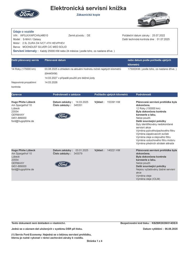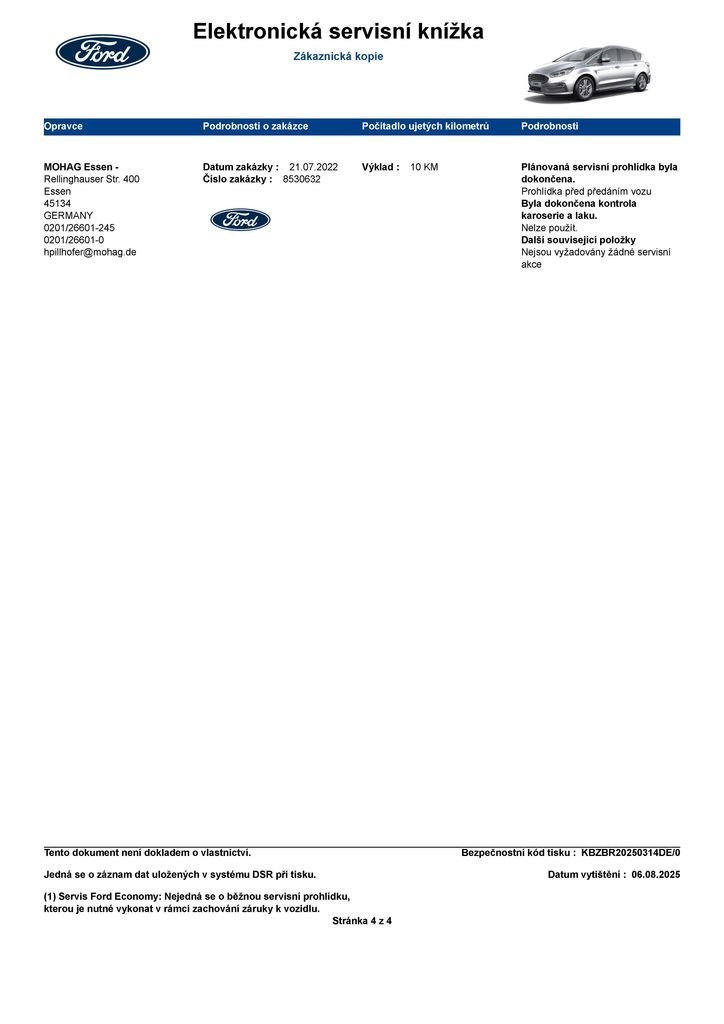 - Servisní knížka