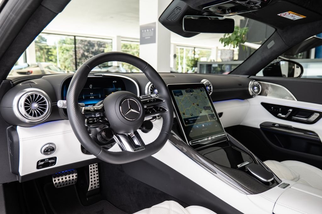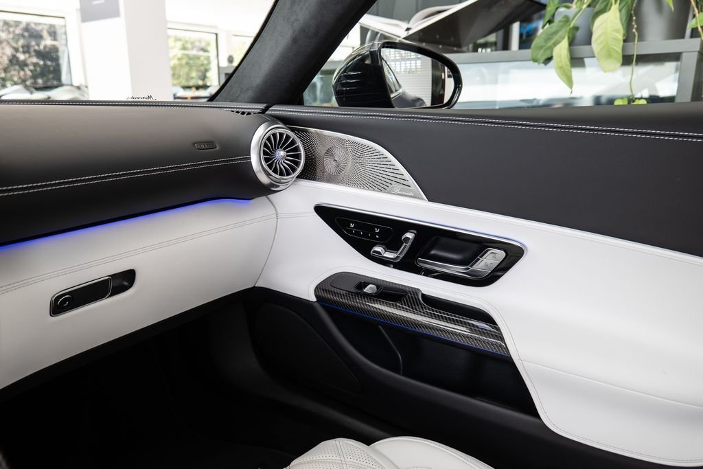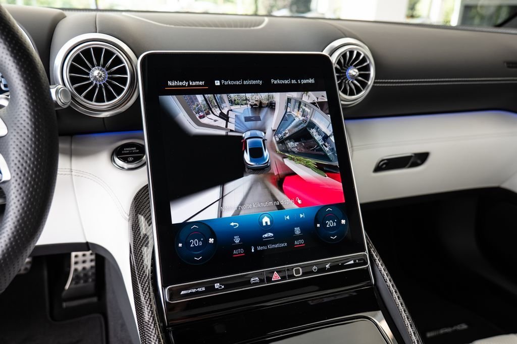 Číslo inzerce: CE.xxx.3016; Indoor plachta na auto; Adaptivní stěrače (Magic Vision Control) vyhřívané; Aktivní odpružení/tlumení (systém zvedání přední nápravy); Interiérové dekory z karbonu (AMG); Filtr vzduchu v interiéru Energizing Air Control Plus; Litá kola vpředu/vzadu: 10.5x21 / 11x21 (AMG/křížová paprsková/kovaná/černá); Lak MANUFAKTUR magno (metalický); Night paket (AMG); Night paket II; Parkovací paket s paměťovým parkovacím asistentem; Sklopná zadní opěradla; Bezpečnostní pásy v barevném provedení; Čalounění: MANUFAKTUR dvoubarevná kůže Nappa; AMG Performance sportovní sedadla; Surround audiosystém Burmester; AMG víčko palivové nádrže