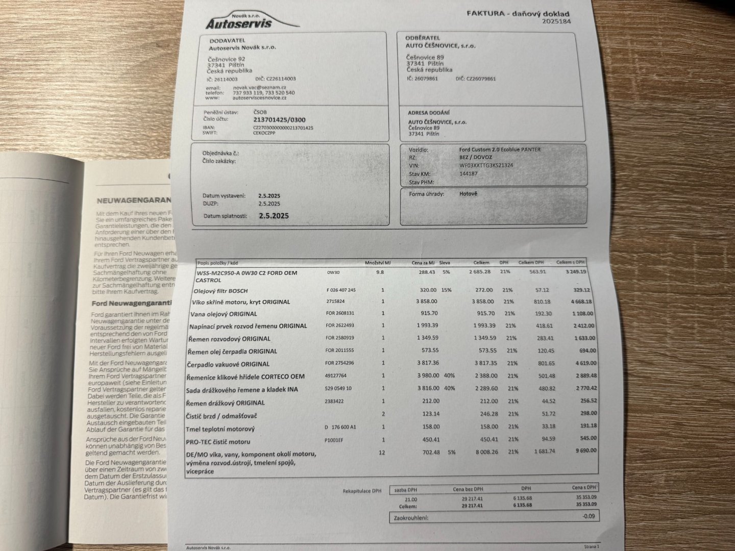 - Servisní knížka